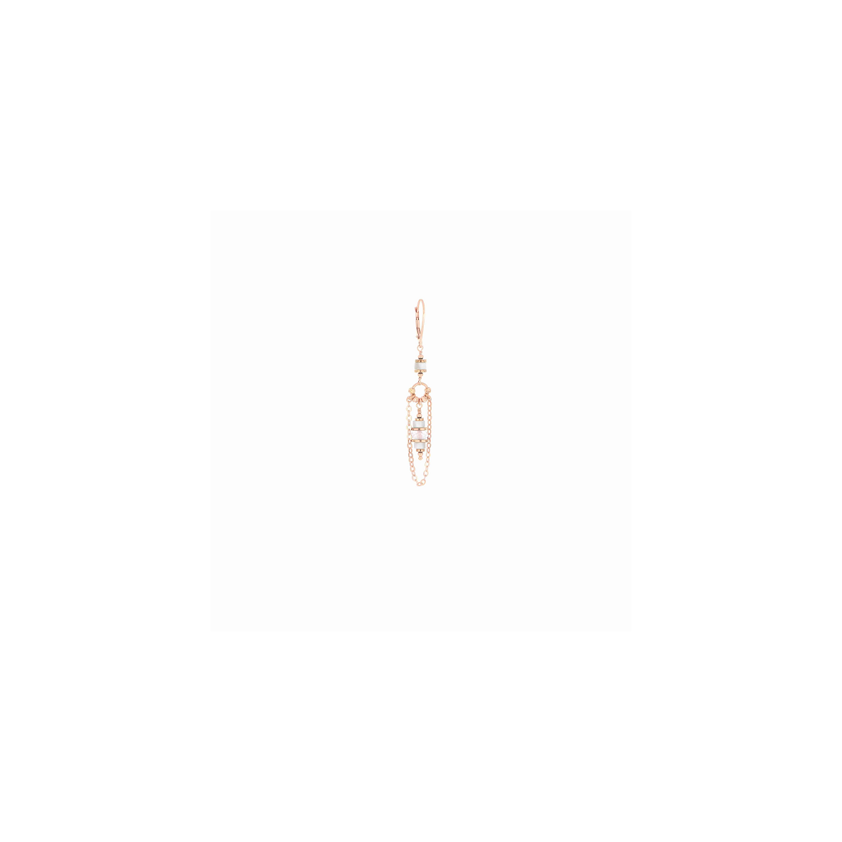 Single pendant earring in rose gold plated 925 silver, with white mother of pearl. Hook closure.