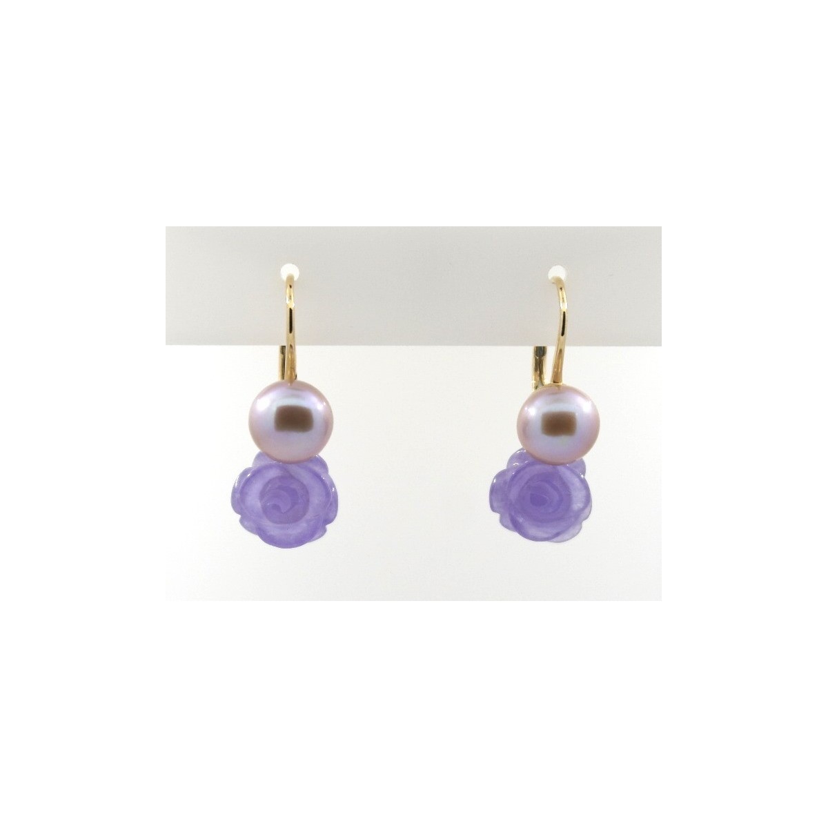 Earrings Mimi jewelry line Grace in 18kt rose gold with pearl color lilac and rose lavender jade stone