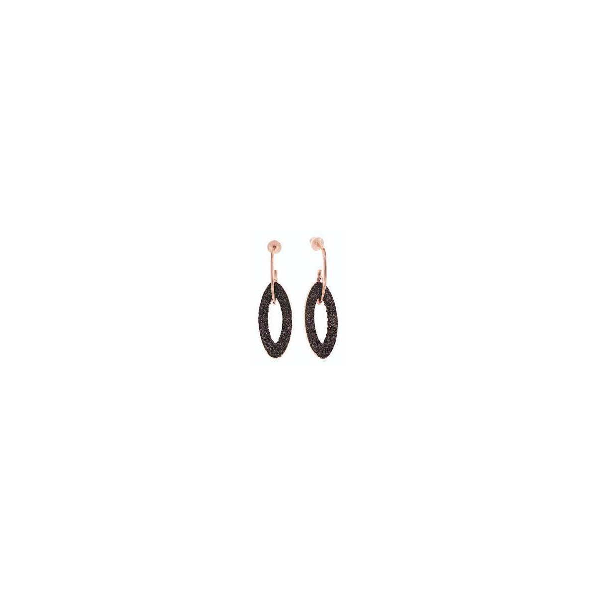Women's earrings, from the Polvere di Sogni collection, made of 925% rosé silver characterized by a double pendant in the shape of an oval circle embellished with micro-particles obtained, with nanotechnology, from the processing of natural mineral materials, with a hexagonal shape to enhance the optical effect of reflection.