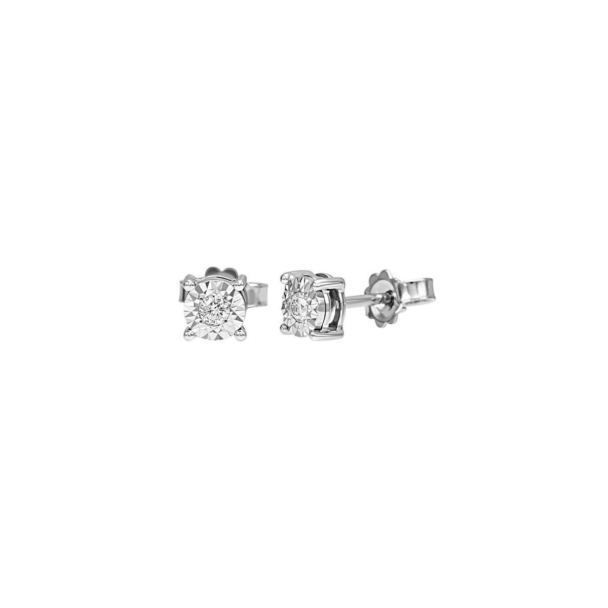 Bliss stud earrings from the Rugiada line, made in 18 Kt white gold with 0.05 ct natural round cut diamonds.