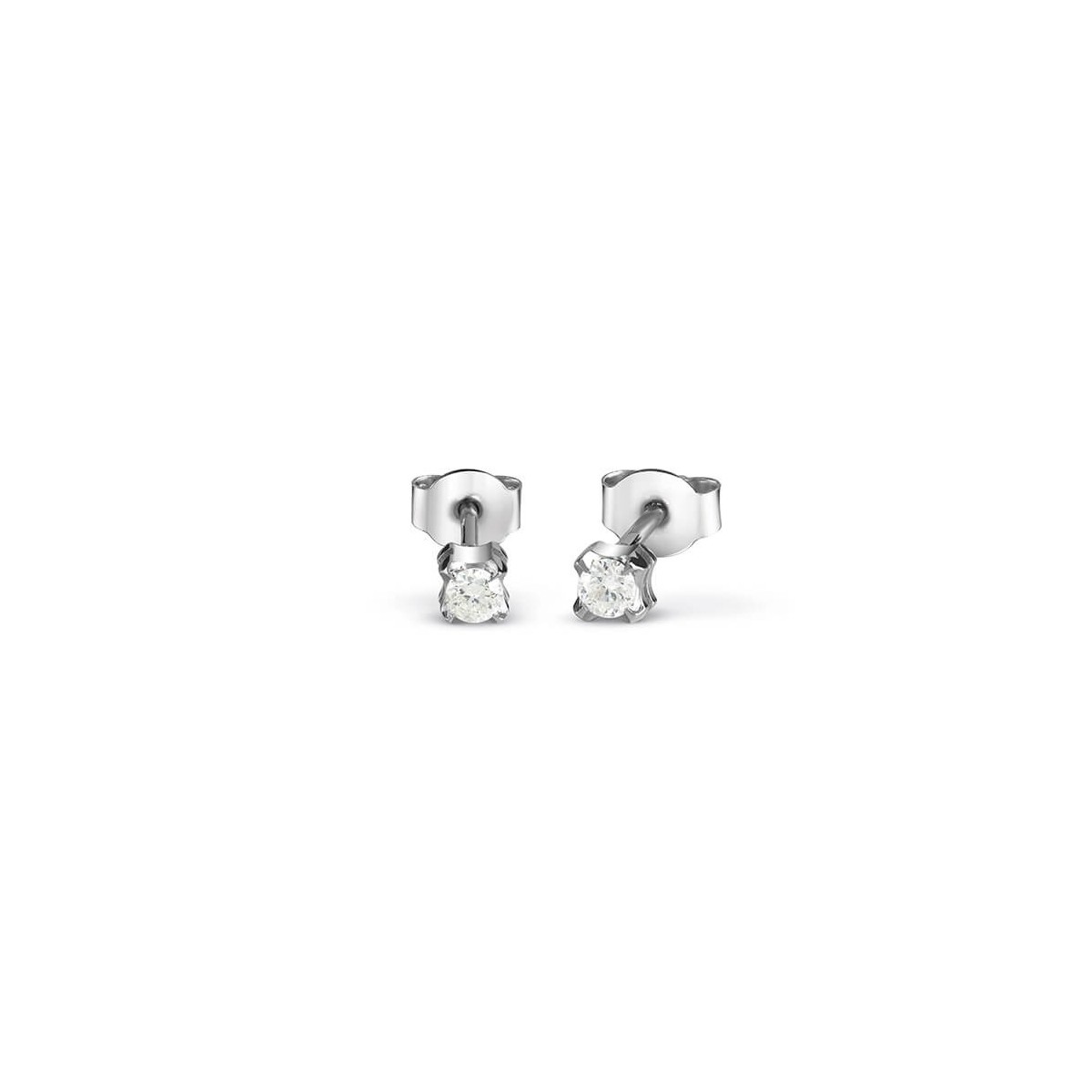 Bliss stud earrings from the Desirè line, made in 18 Kt white gold with 0.06 ct round cut natural diamonds.