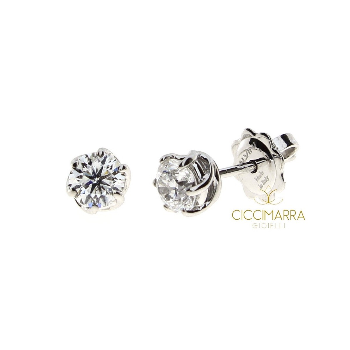 Earrings with 0.28 ct brilliant cut natural diamonds with 6-jawed setting frames. Lavinia line in 18kt white gold.