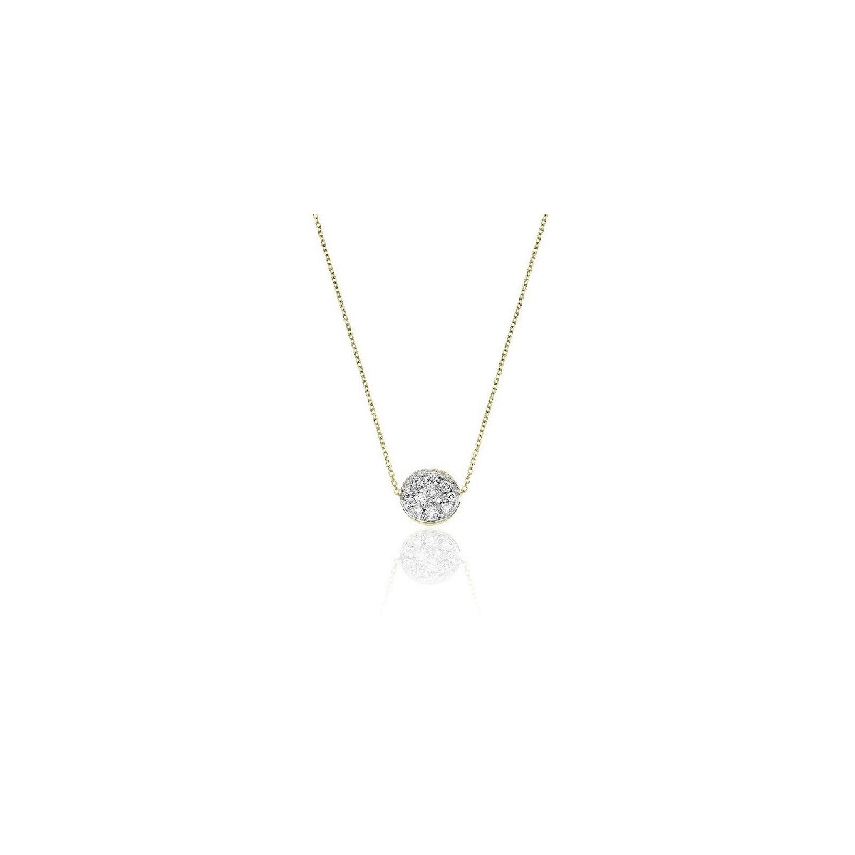 Chimento women's necklace from the Armillas Glow collection, made in 18 kt yellow gold, pendant made with many small natural diamonds that release a hypnotic light.