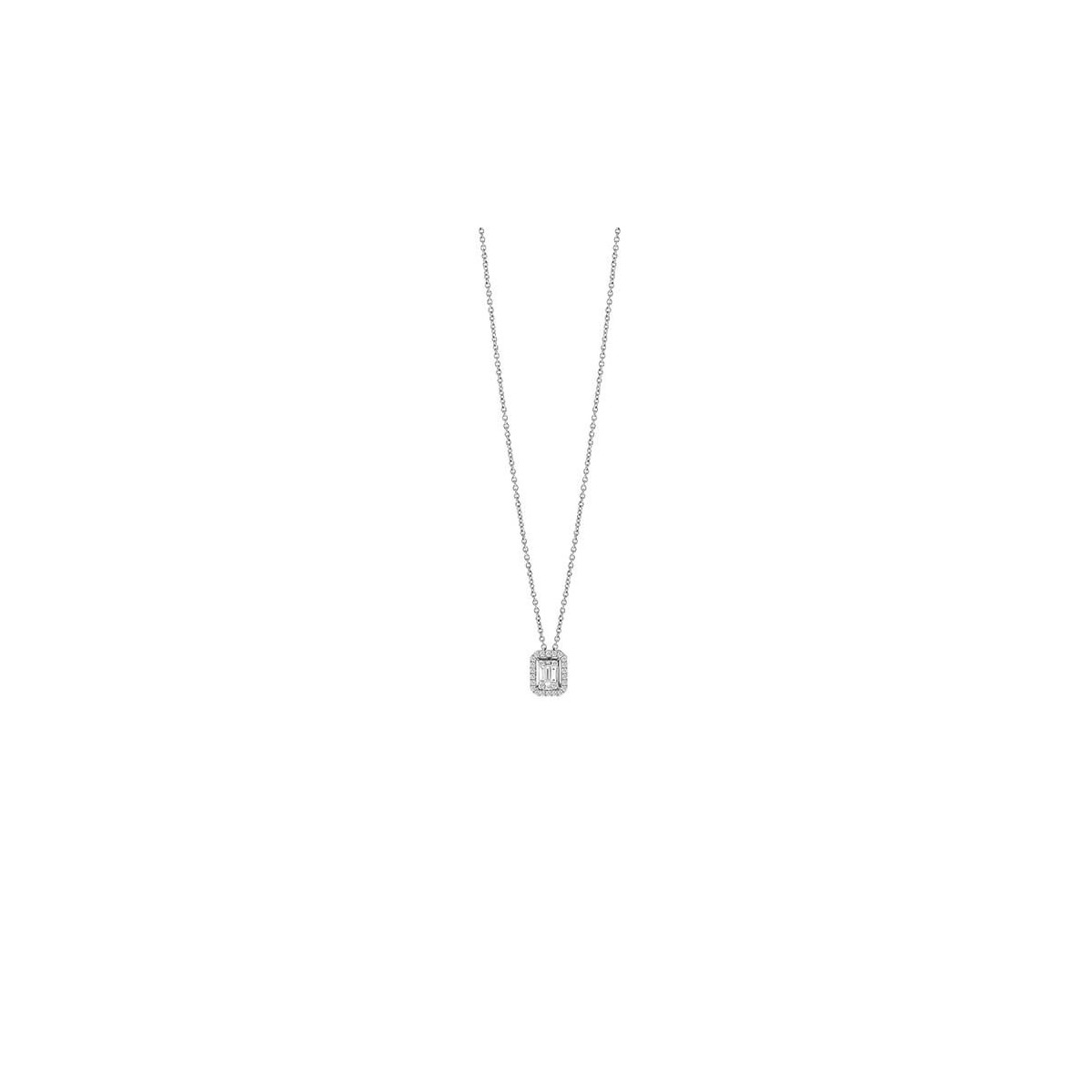 Salvini women's girogola necklace from the new Magia collection made of 18-karat white gold with a central rectangular pendant, 0.10-carat baguette-cut natural diamond, embellished with a crown of 0.20-carat small diamonds.