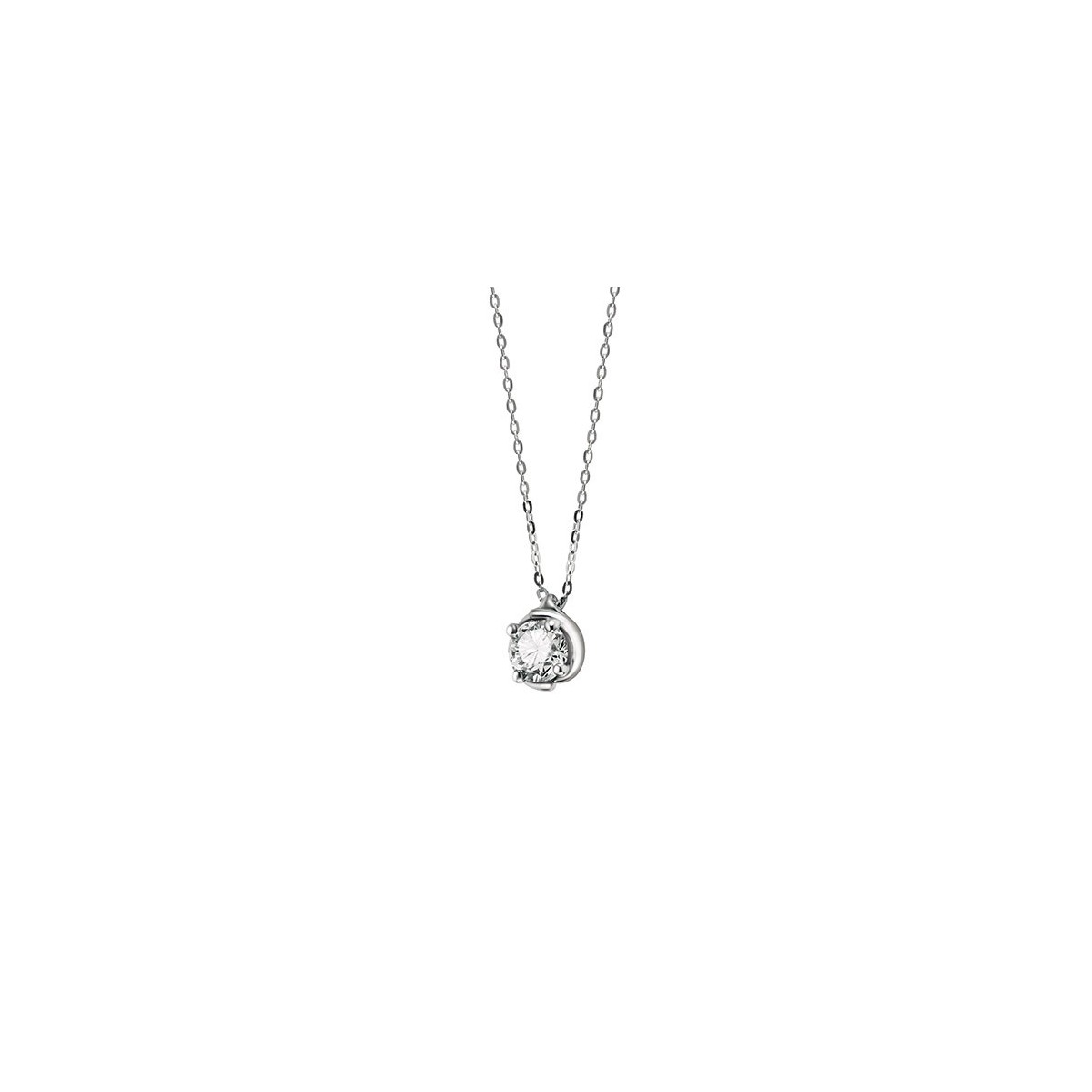 Woman's necklace, Abbraccio collection in 18 kt white gold and light point pendant with torchon bezel and 0.10 carat brilliant cut natural diamond. Lobster clasp closure