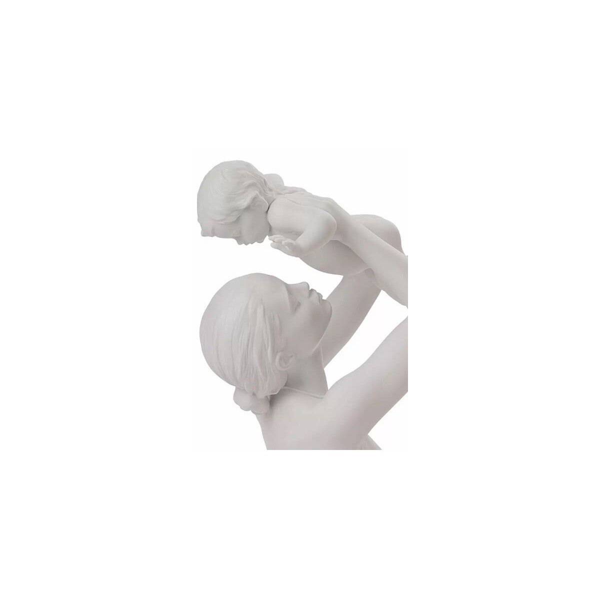 Lladrò statue in opaque white porcelain, handmade by the sculptor Ernest Massuet, representing a mother who holds and plays with her daughter with a gesture of kissing her belly.