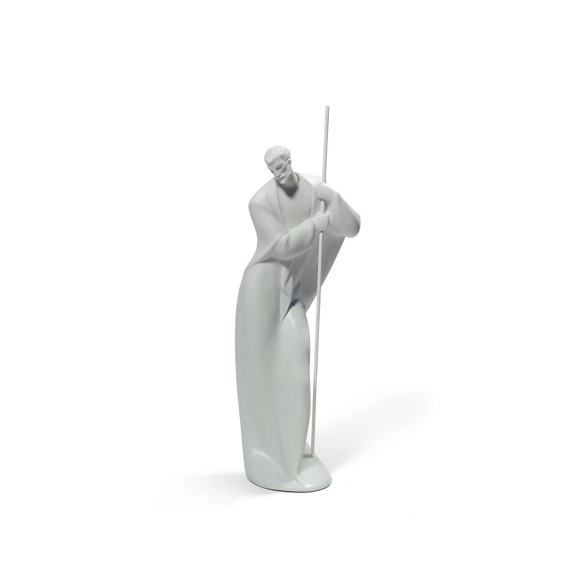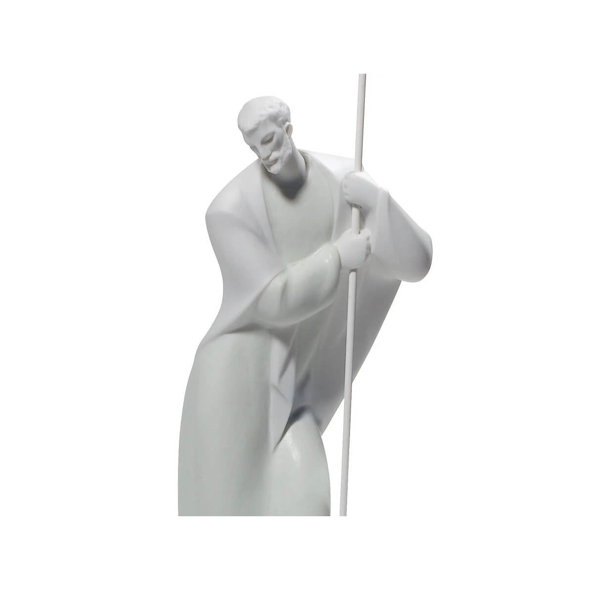 Artistic sculpture in opaque porcelain depicting the figure of Saint Joseph holding his staff, designed by Josè Luis Santes.