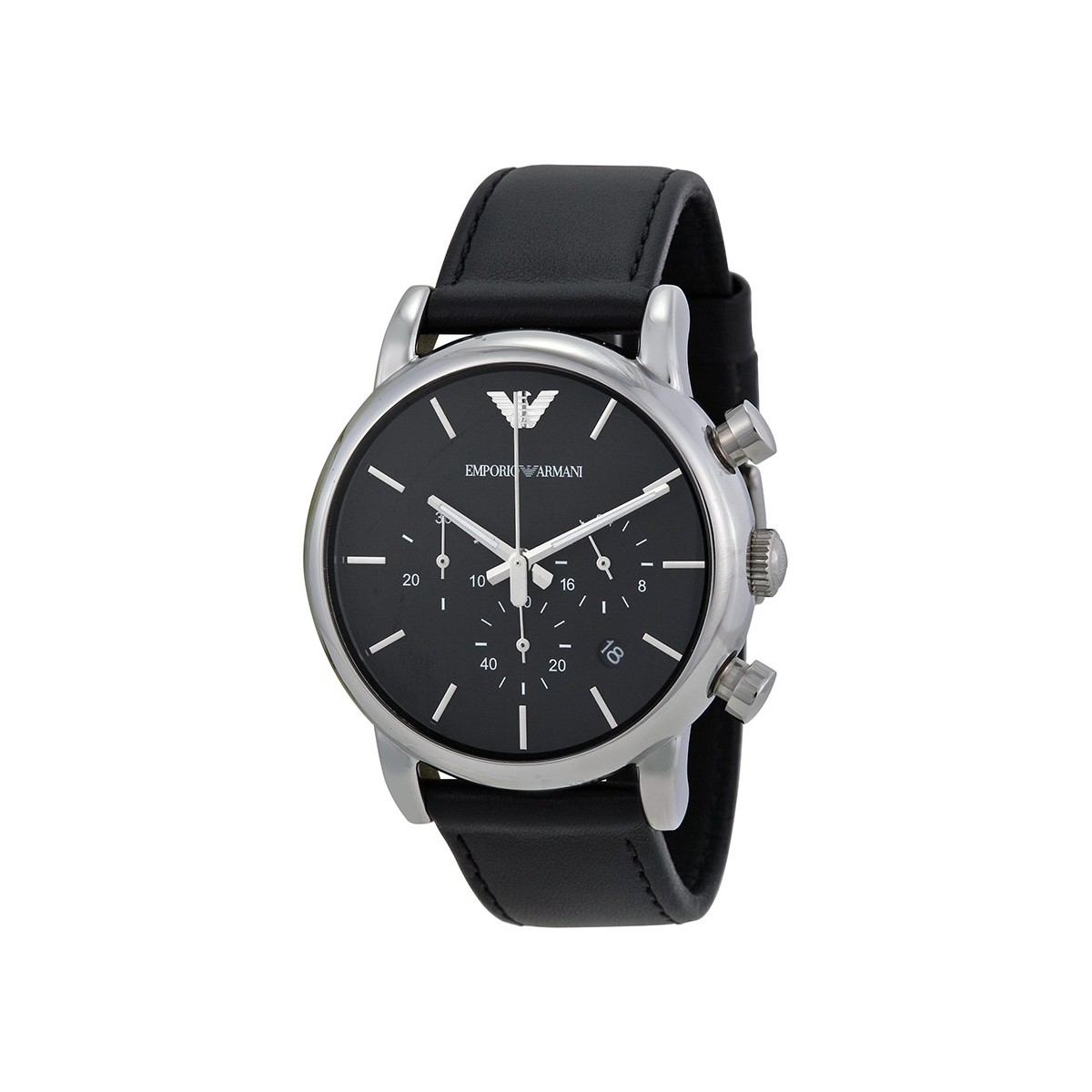 Man watch Black dial Rhododized steel inidic Black leather bracelet Case 41mm Water resistance: 5 Atm