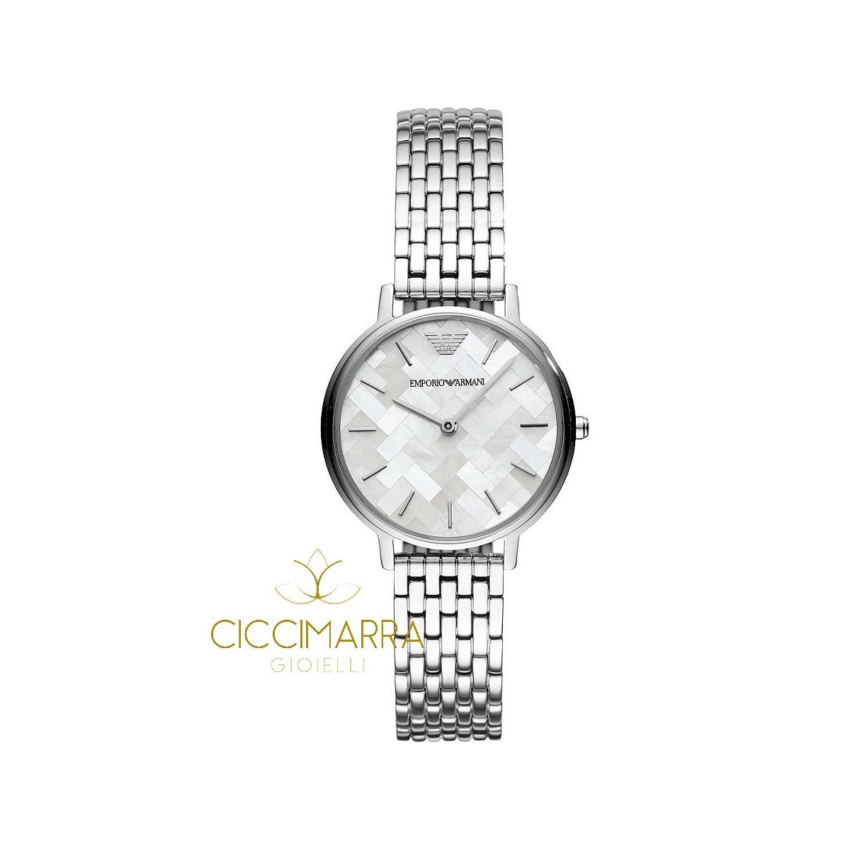 Stainless steel case, silver, with a diameter of 32mm and a thickness of 6mm with a fixed ring nut; mother of pearl dial with squared workmanship with stick indexes and silver hands. The bracelet is in silver stainless steel with deployant closure.