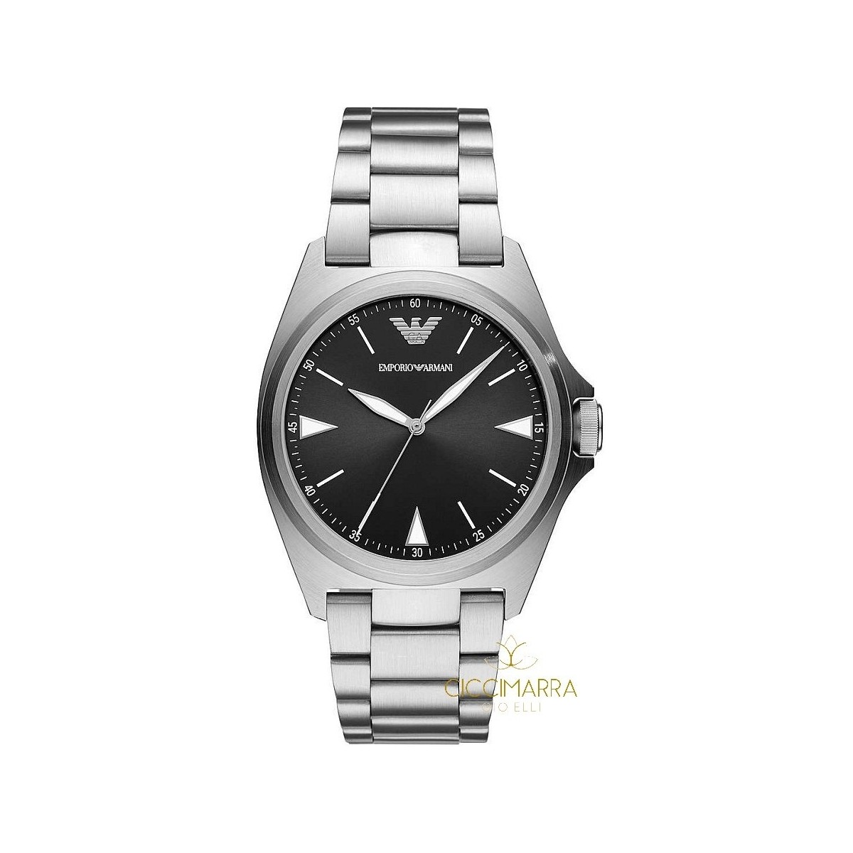 Nicola time only watch Only time-limited male watch with steel case and strap, black dial and quartz movement, mother-of-pearl indexes and hands.