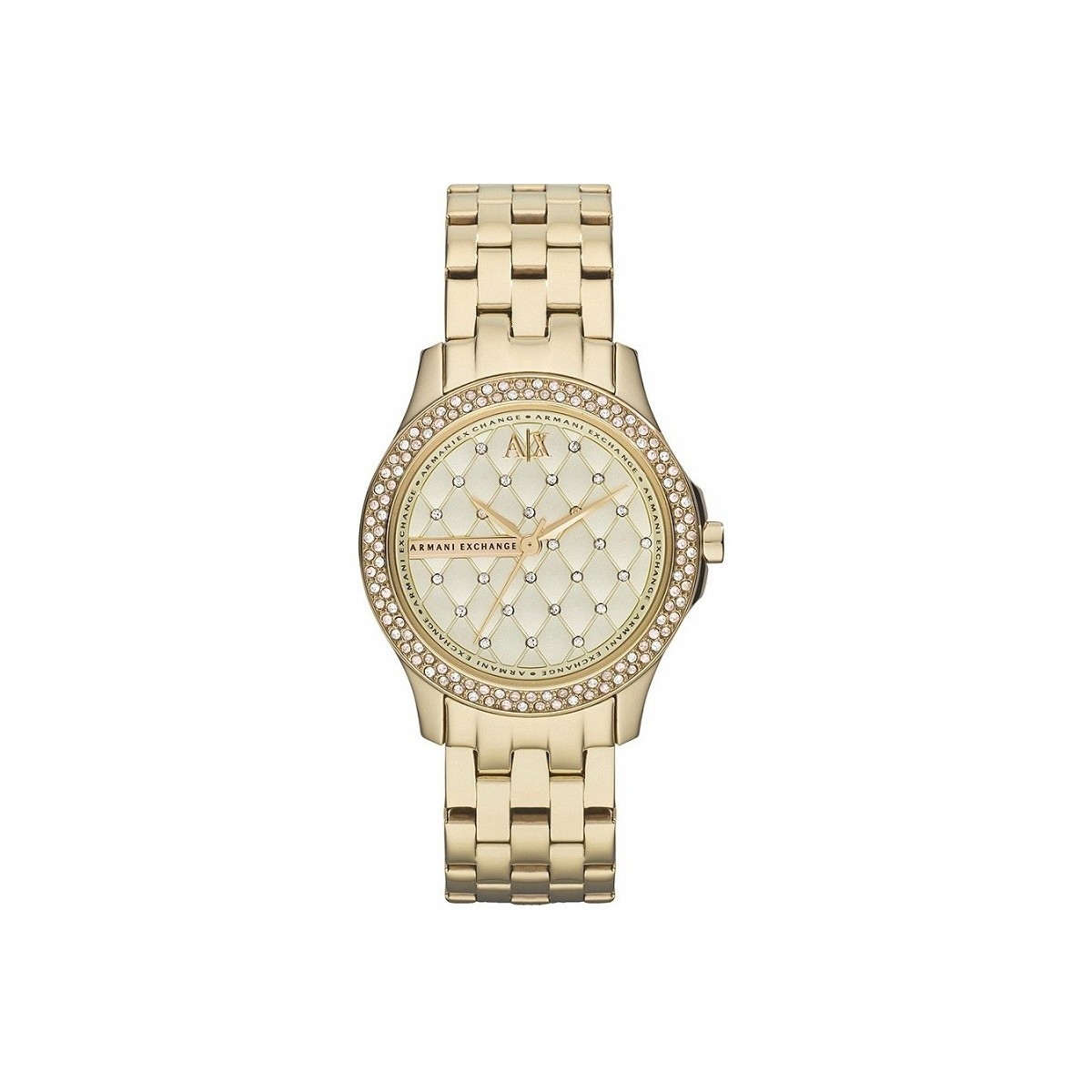 Armani watch only time of the Exchange line for women with case and strap in golden steel, quartz movement and dial with crystals AX5216