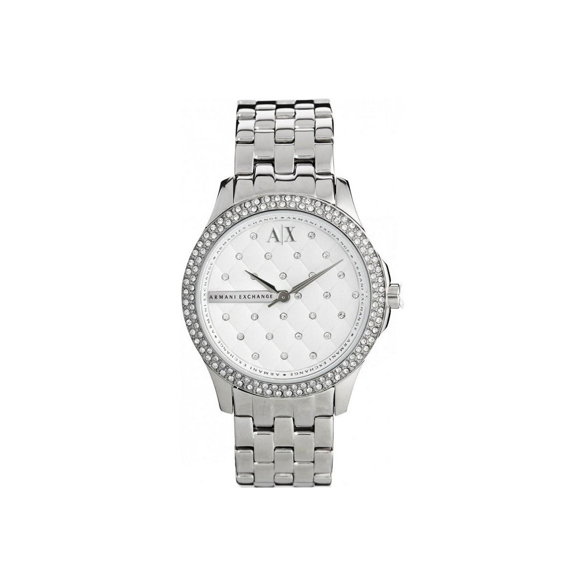 Armani watch only time of the Exchange line for women with steel case and strap, quartz movement and dial with crystals - AX5215