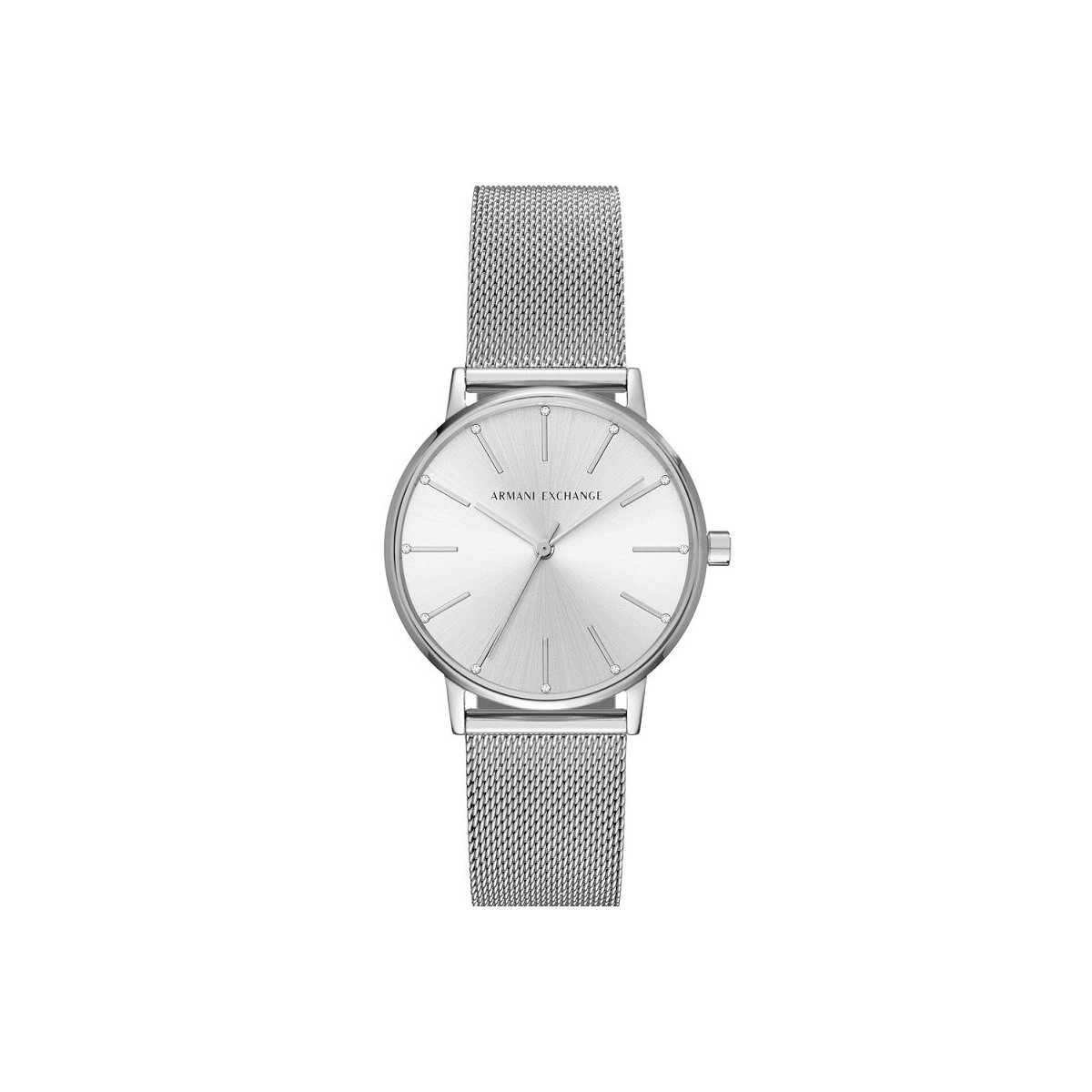 Armani watch only time of the Exchange line for women with steel case, Milanese mesh strap and silver dial