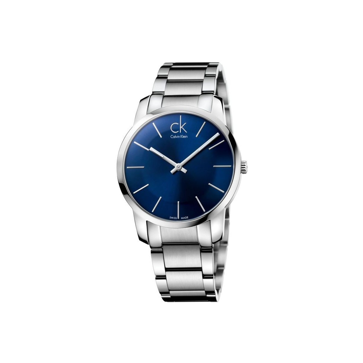 City Watch with blue dial and silver indices, quartz movement and steel bracelet