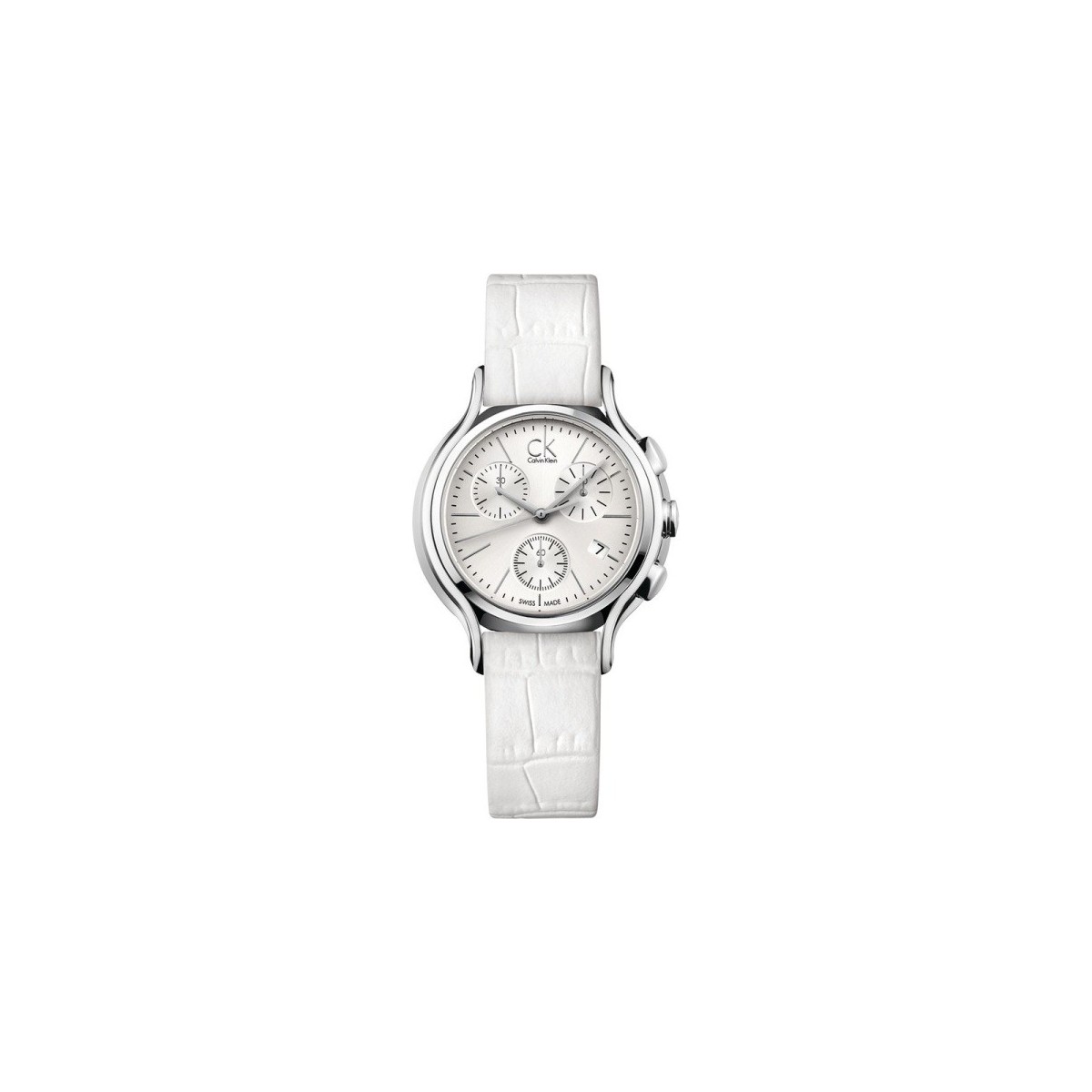 Women's watch quartz chronograph line Skirt with white leather strap silver dial