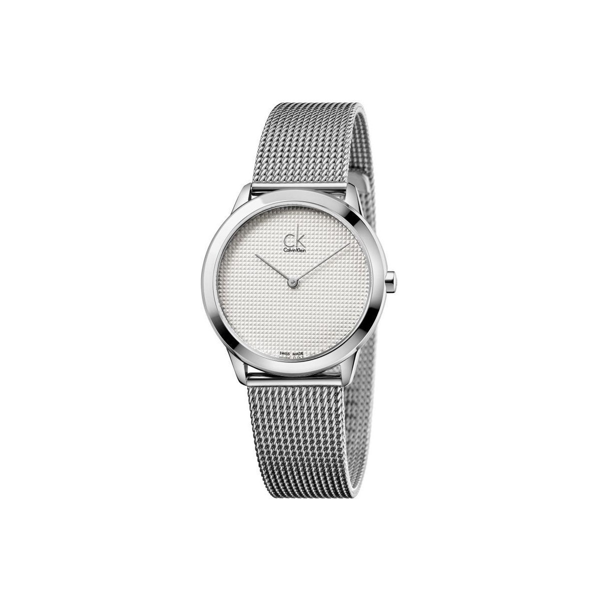 Minimal line watch with stainless steel case and bracelet, White Dial mesh worked and quartz movement