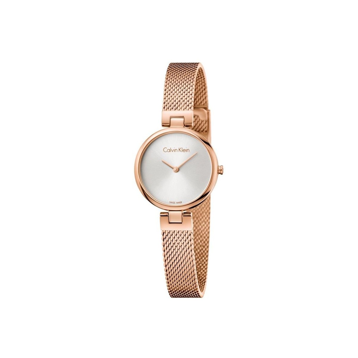 Calvin Klein Authentic - Discreet Milanese mesh bracelet. Round. Calvin Klein authentic. This model captures the wearer thanks to its delicate lines, revealing all the beauty of modernity. A minimalist yet sophisticated watch. TYPE Woman - - FINISH Polished - CASE MATERIAL PVD rose gold - DIAL COLOR Silver - - - BRACELET MATERIAL Steel Milanese mesh - BRACELET COLOR PVD Rose gold - MOVEMENT TYPE Quartz - MOVEMENT ETA 901.001 - FUNCTIONS Hours, minutes - Swiss Made - WATERPROOF 3bar (up to 30 meters) - CASE DIAMETER - - GLASS Mineral - TYPE OF CLOSURE Sliding buckle