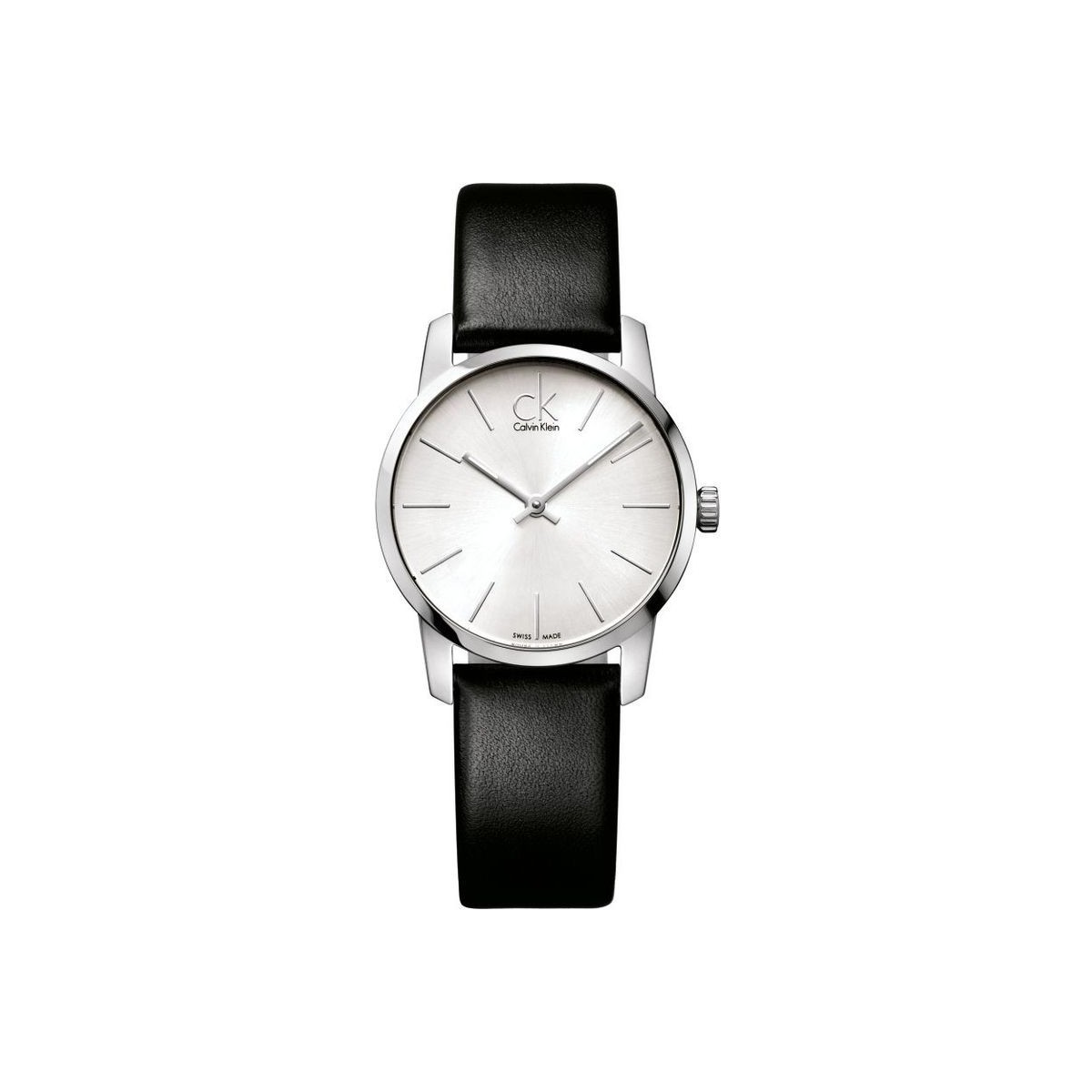 Calvin Klein City - Shiny leather bracelet. Of a timeless class. Calvin Klein city. A linear construction that creates a timepiece with a simple but effective look. This watch in mineral glass and polished metals takes inspiration from metropolises and contemporary man, creating an extremely luminous effect. TYPE Woman - - FINISH Polished - CASE MATERIAL 316L steel - DIAL COLOR Silver - STRAP MATERIAL Leather - STRAP COLOR Black - - - TYPE OF MOVEMENT Quartz - MOVEMENT ETA F05.111 - FUNCTIONS Hours, minutes - Swiss Made - WATERPROOF 3bar (up to at 30 meters) - CASE DIAMETER 30.90mm - - GLASS Mineral - TYPE OF CLOSURE Pin buckle