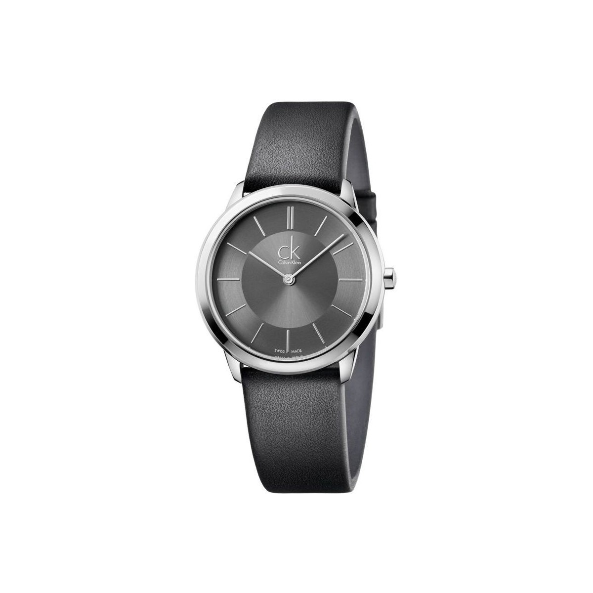 Calvin Klein Minimal Midsize - Modern leather strap. Sophisticated. Calvin Klein minimal. Its timeless design evokes the distinctive style of the Calvin Klein brand. Designed for both men and women, Calvin Klein minimal is characterized by a Milanese mesh strap, polished steel case and dial with polished indexes. TYPE Unisex - - FINISH Polished - CASE MATERIAL 316L steel - DIAL COLOR Anthracite - STRAP MATERIAL Leather - STRAP COLOR Black - - - MOVEMENT TYPE Quartz - MOVEMENT ETA 901.001 - FUNCTIONS Hours, minutes - Swiss Made - WATERPROOF 3bar (up to 30 meters) - CASE DIAMETER 35.00 mm - - GLASS Mineral - TYPE OF CLOSURE Pin buckle