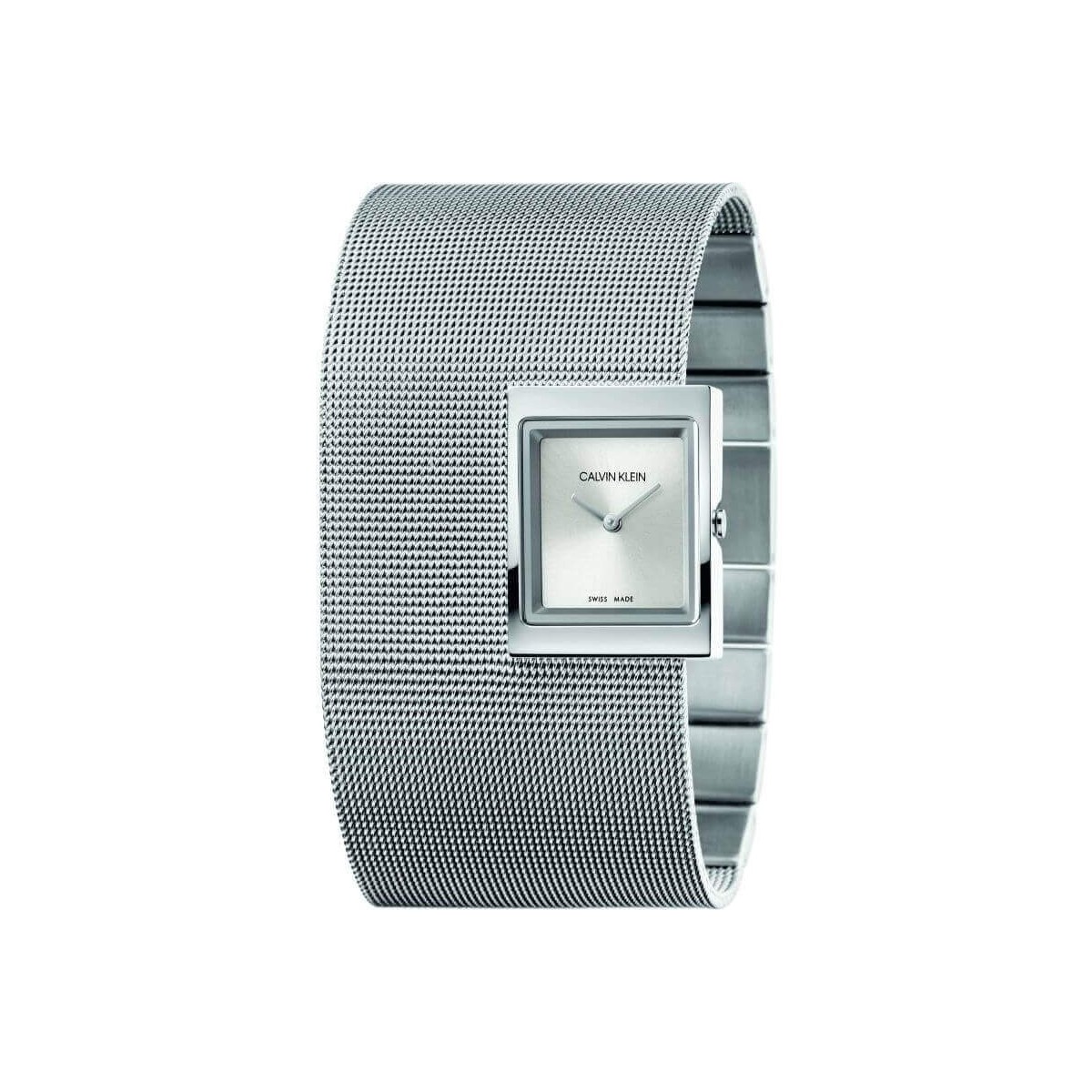Semi-rigid Milanese band bracelet watch and square dial, 22mm case, quartz movement with button closure.