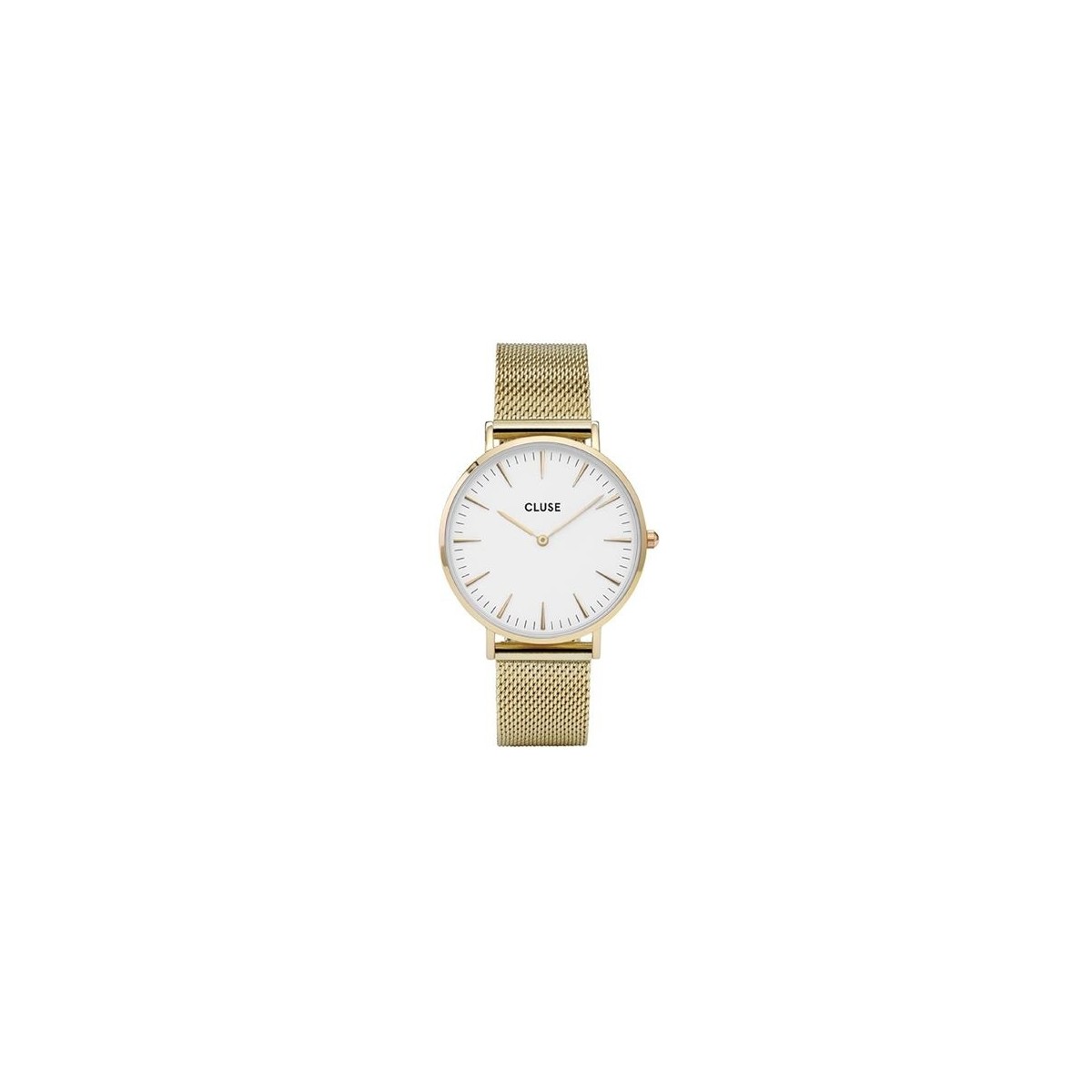 Watch CLUSE Collection: La Boheme. the shape of the round white dial, stainless steel case and bracelet coated/placcato gold, quartz MVT. MIYOTA 2025 2/MMF BALLS.