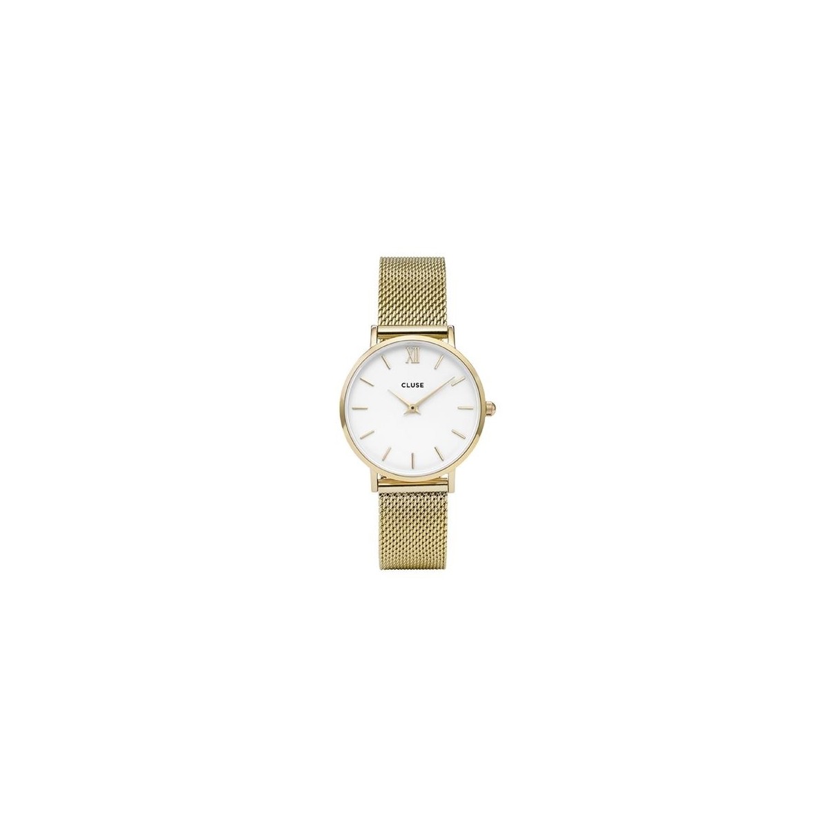 Watch CLUSE collection: Minuit, the shape of the round white dial, the strap and stainless steel mesh coated with gold, quartz MVT. MIYOTA 2025 2/Globe news; fit male female