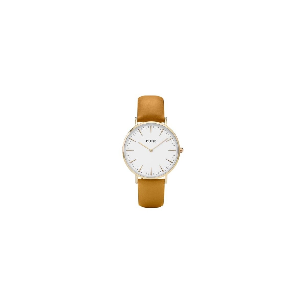 Watch CLUSE collection: La Boheme, the shape of the round white dial with nickel plated, mustard-colored leather strap and the casing doorframes gold, quartz MVT. MIYOTA 2025 2/unisex fit novelty BALLS