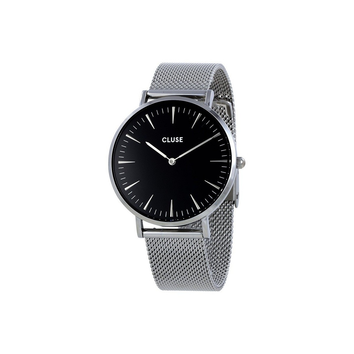 Unisex Close Watch The Bohème Mesh with silver case, black dial and silver bracelet in Milan jersey.