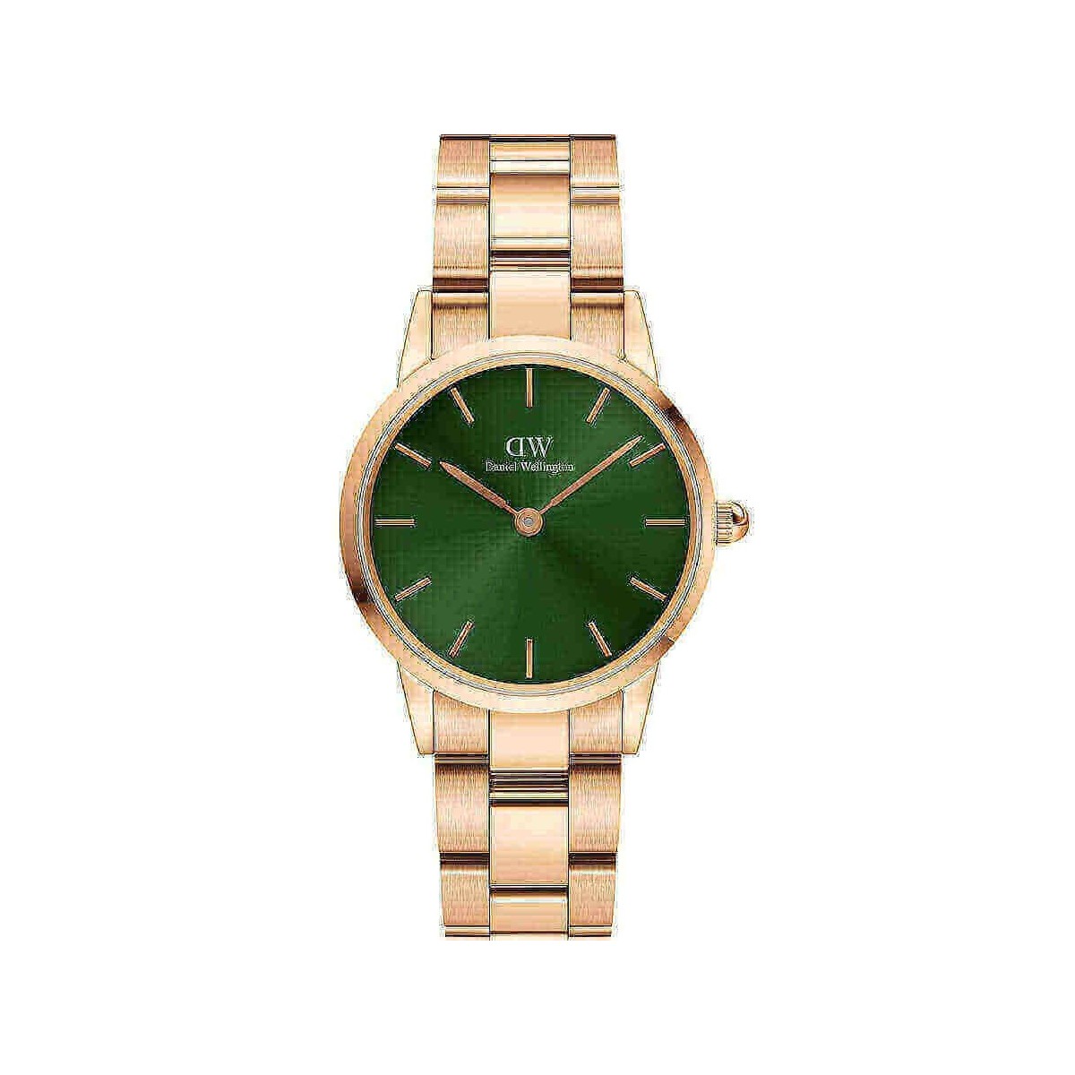 Ladies watch from the Link Emerald collection. 28mm case with 12 notch green dial, rose stainless steel strap - DW00100421