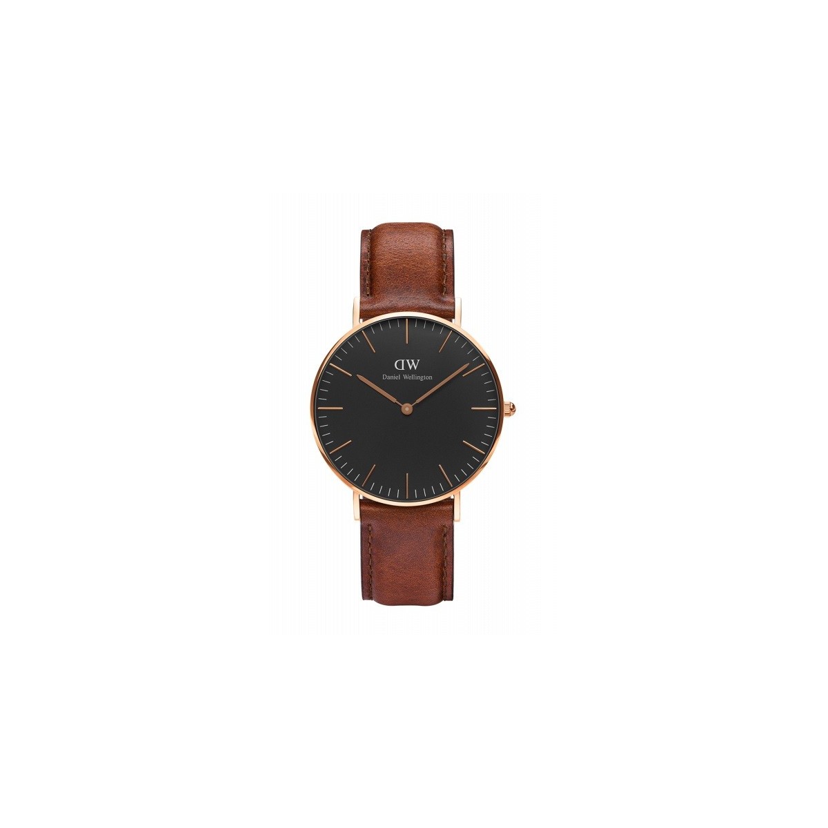 Watch Classic Black St Mawes small with stainless steel PVD Rosé, with time only quartz movement, black dial and smooth brown leather strap-DW00100136