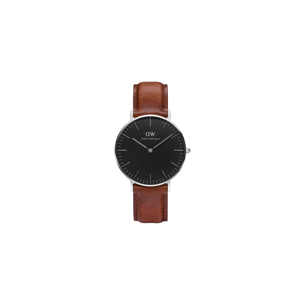 Watch Classic Black St Mawes small with stainless steel silver, quartz movement, black dial and leather strap time only smooth Brown-DW00100142