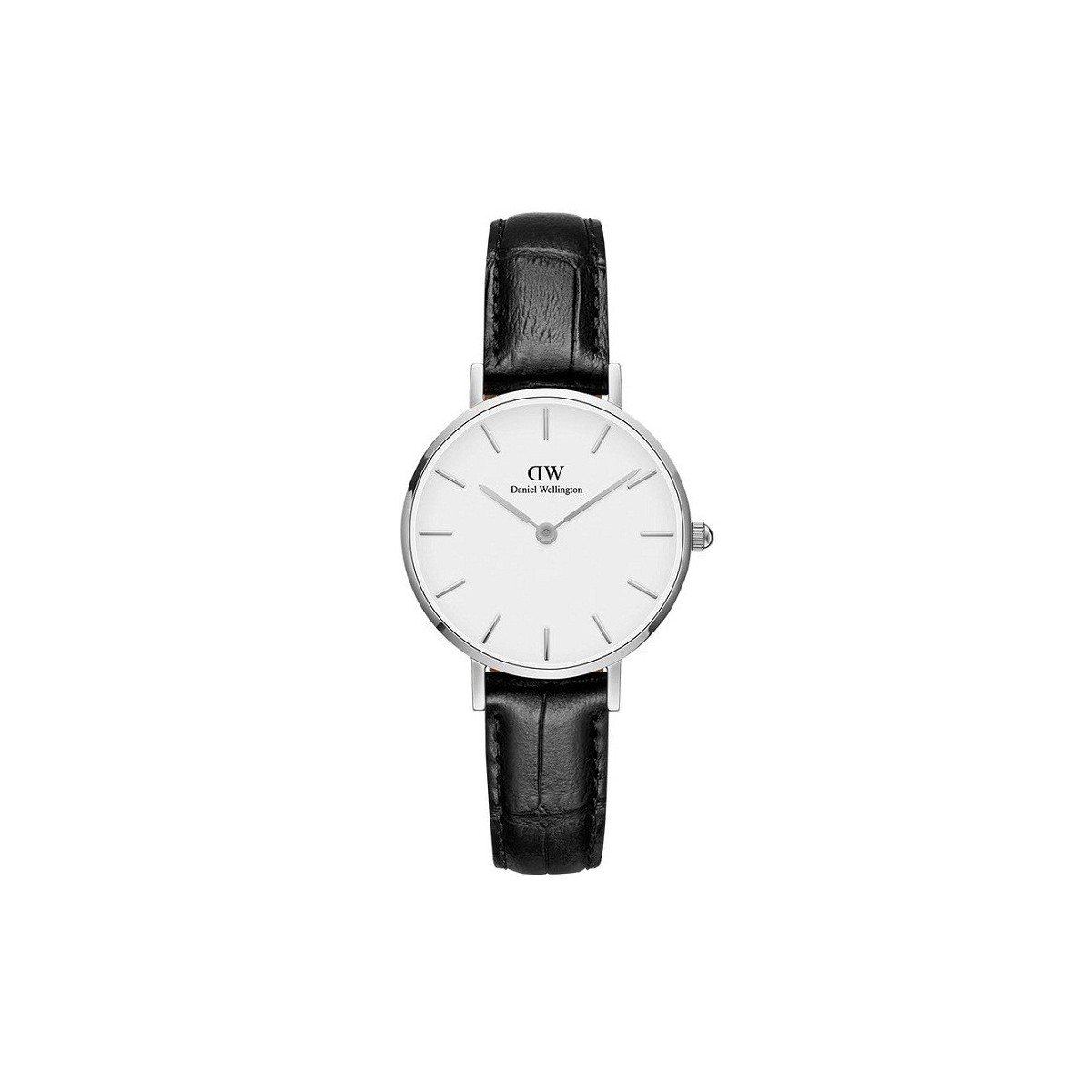 Watch Classic Petite line PVD silver steel case, quartz movement, white dial and black leather strap