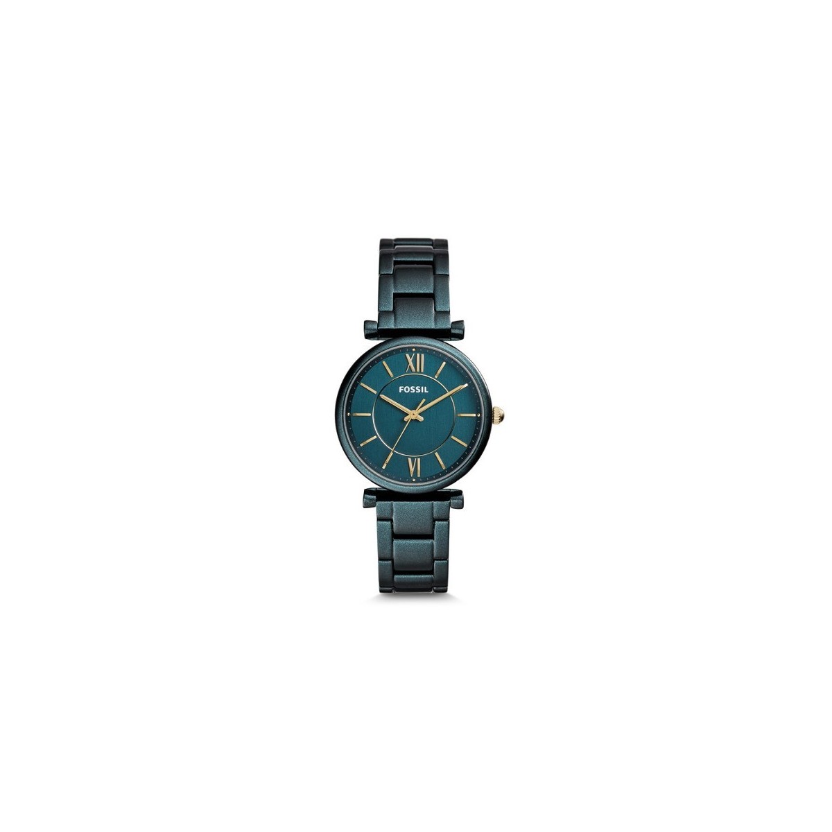 Three-leaf stainless steel tea-leaf carlie with green dial with gold-colored Roman numerals, stainless steel case and strap