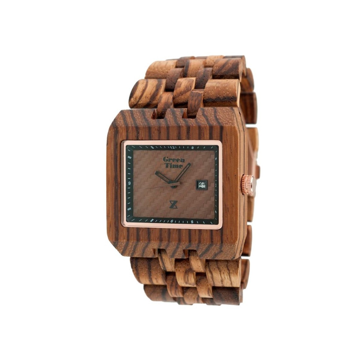Rectangular watch in zebrano wood 100% natural and handmade with quartz movement - ZW004F