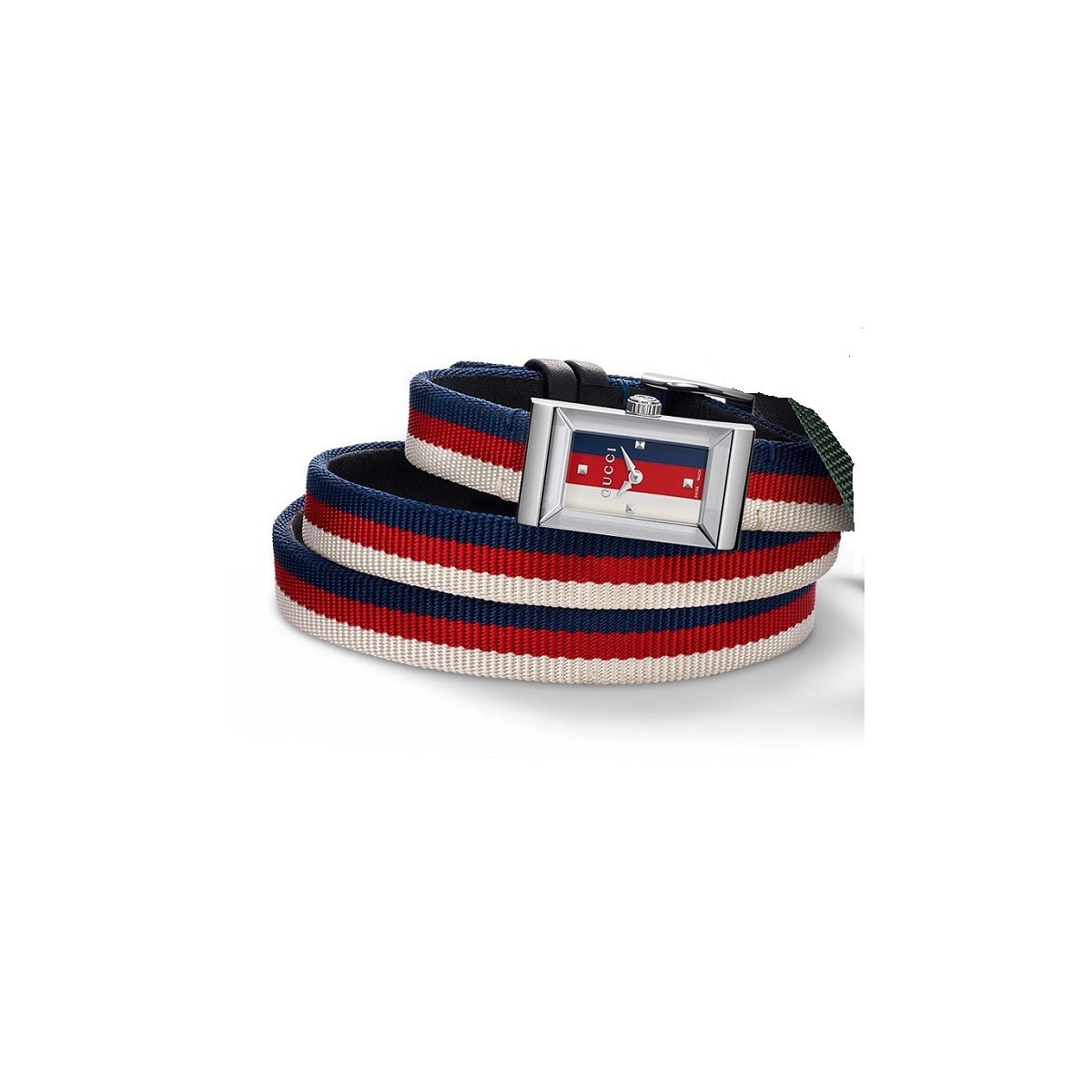 Clock line G-Frame with stainless steel rectangular dial and triple row nylon strap cream-red-blue
