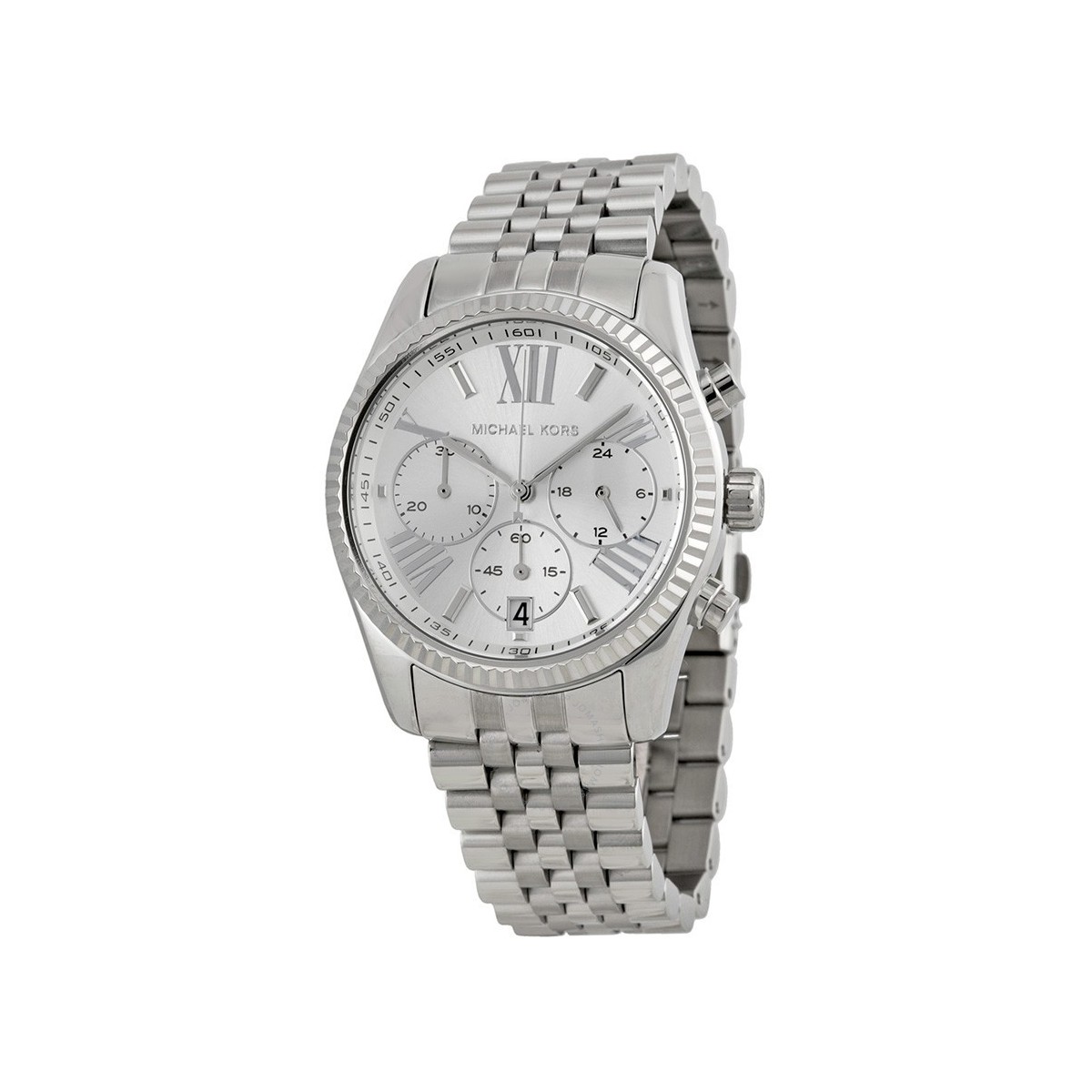 Medium Chrono mens watch with stainless steel case and bracelet, bezel, silver dial with Roman numerals