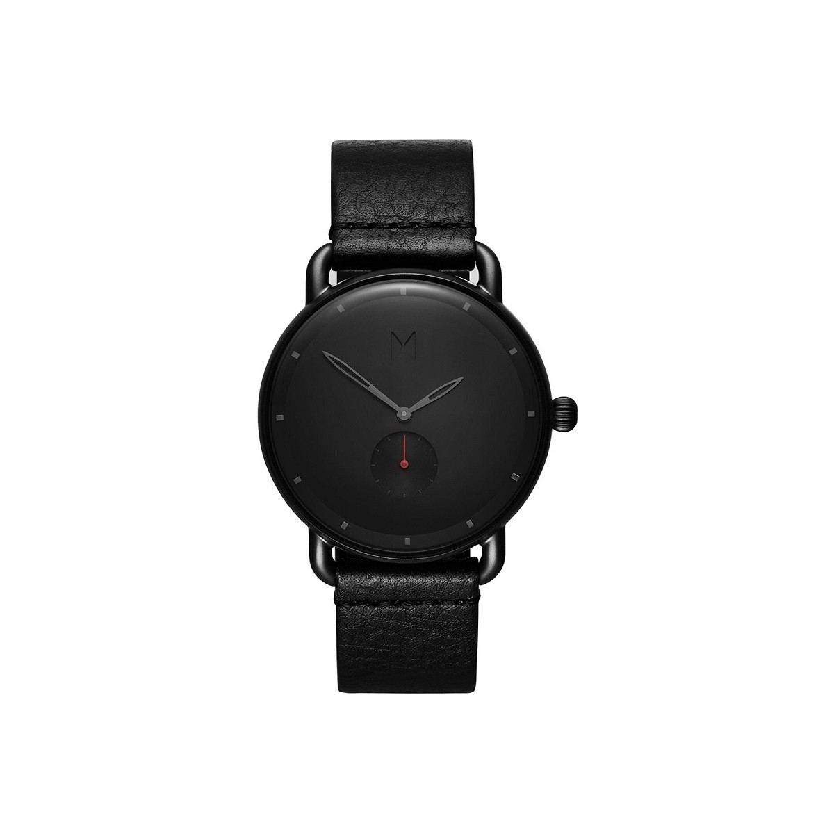 Quartz men's watch with 41mm stainless steel pvd case, tone on tone dial with gray hands and red spherical lancet, black leather strap novelty - MR01-BBL