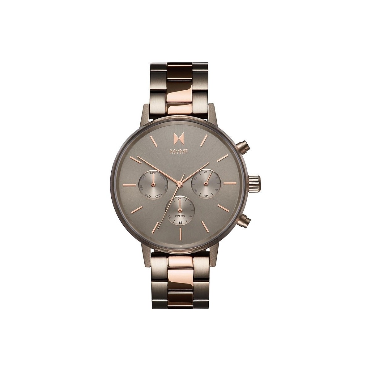 New collection Nova woman watch with 38 mm case, Myota quartz Japanese movement, satin champagne dial and pink hour markers; steel bracelet 16mm bronze rose gold mixed - CASE DIMENSION: 38 MM; - CASE MATERIAL: STEEL '; - DIAL: SATIN GRAY; - GLASS: Mineral; - MOVEMENT: Miyota quarz; - 5ATM WATER RESISTANCE Dealer and Official Italian dealer in Puglia in Cisternino in the Province of Brindisi