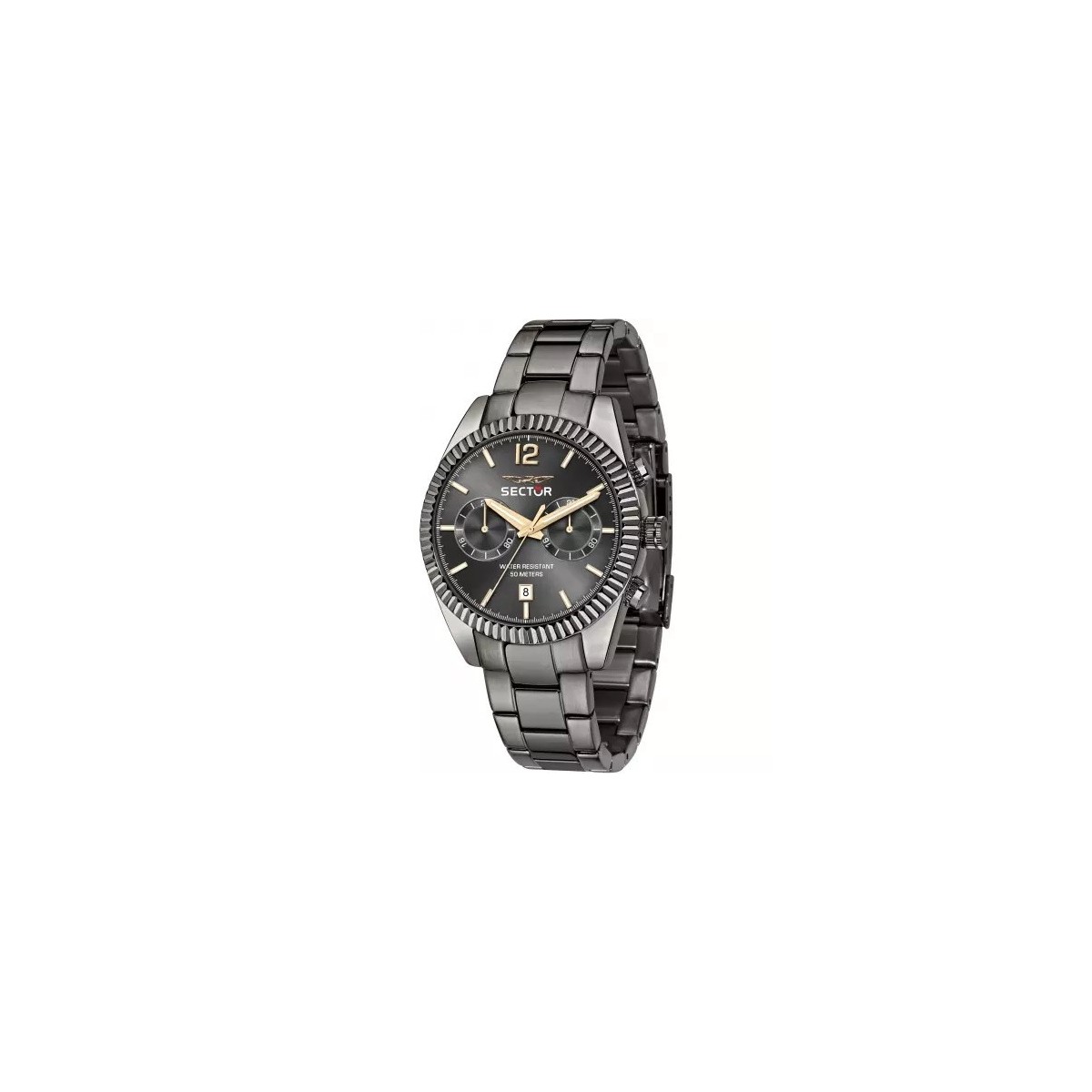 Men's watch from the 240 collection with gunmetal steel case and strap, folding clasp, black dial and quartz movement with chronograph function.