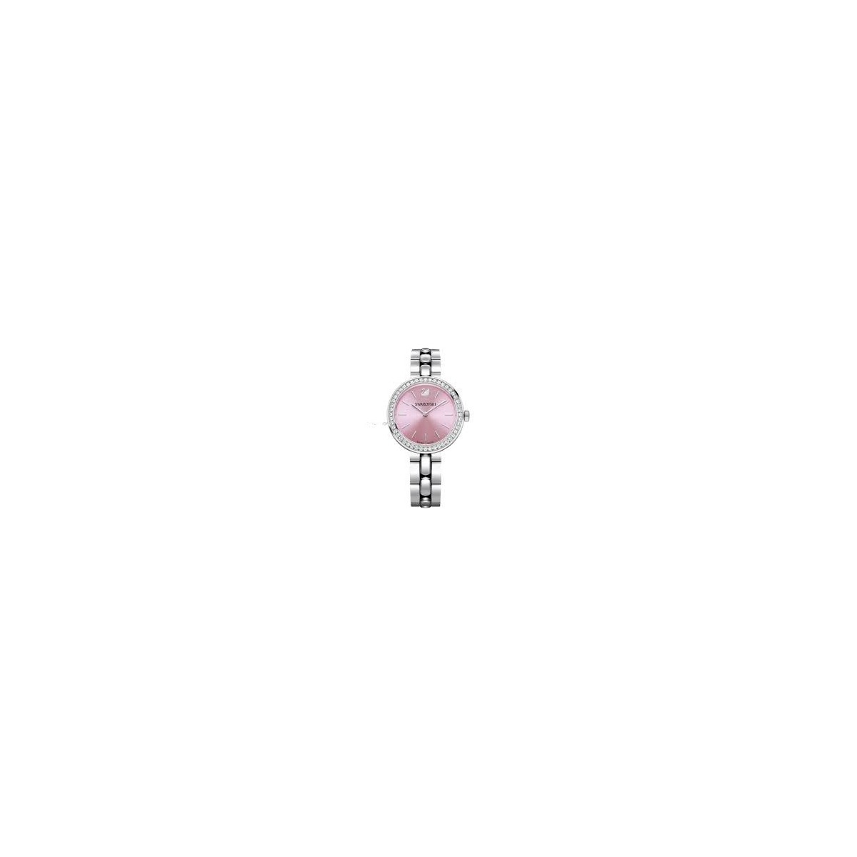 Watch with stainless steel case, satin pink dial and bezel with pave crystals; stainless steel bracelet