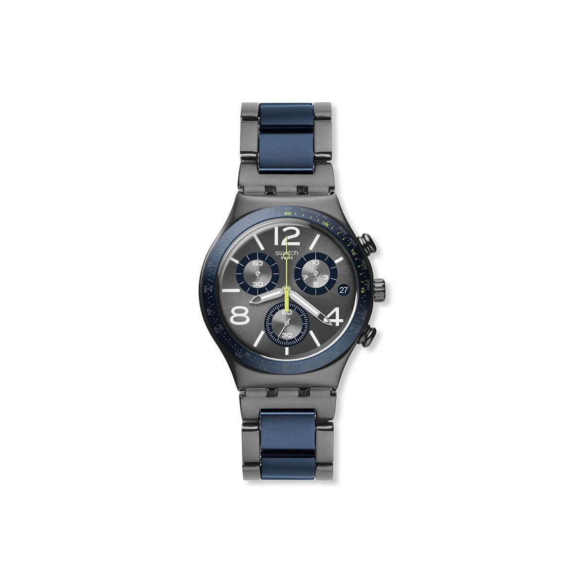 DR SWATSON (YCM4006AG) features a sun-brushed grey dial with easy-to-read white numerals and indexes and three counters. An anodized blue aluminum bezel sports a tachometric scale and an adjustable anodized grey and blue aluminum strap pulls the look together.