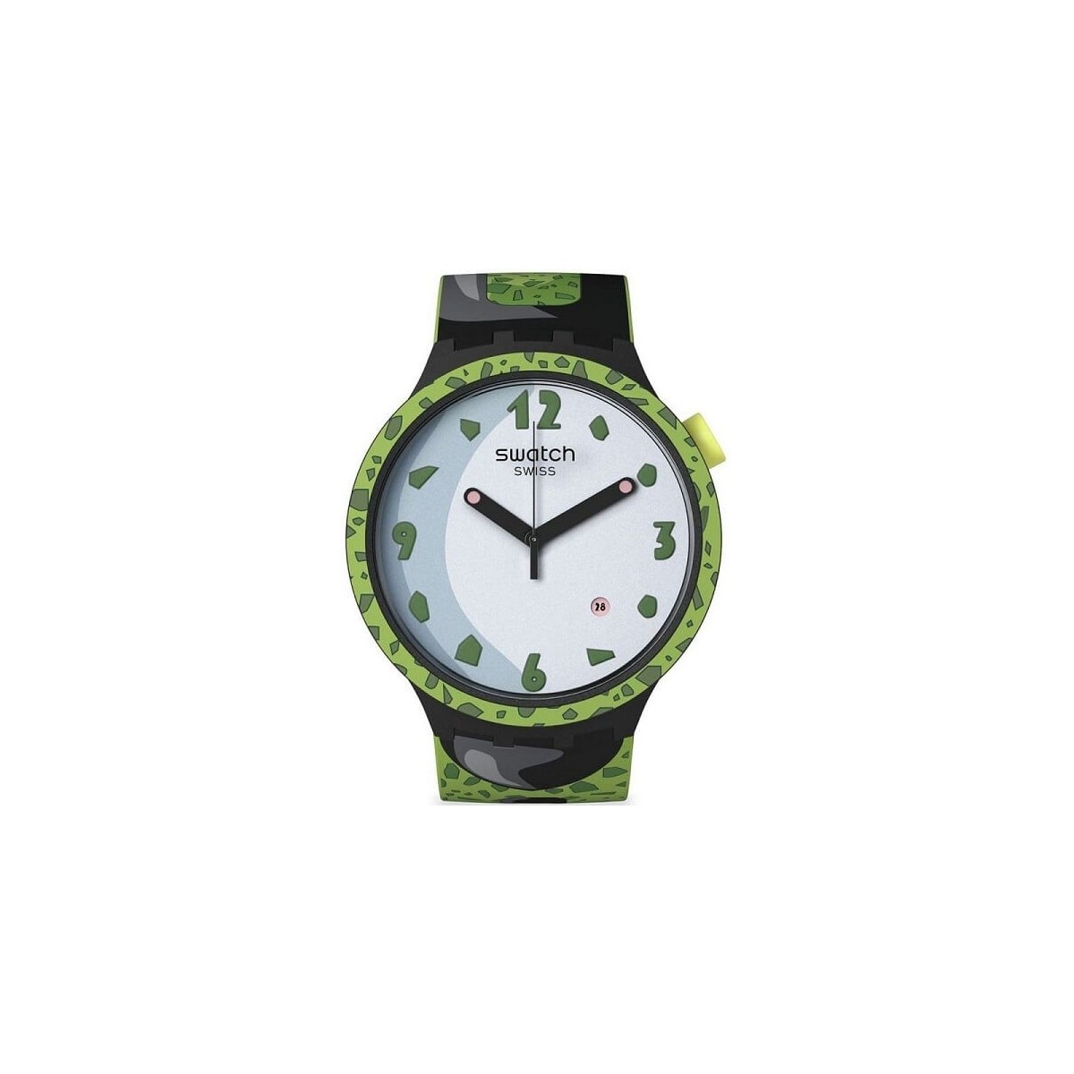 The strap is in silicone with Cell leather print, the case is green and yellow crown, buckle closure with printed loops.