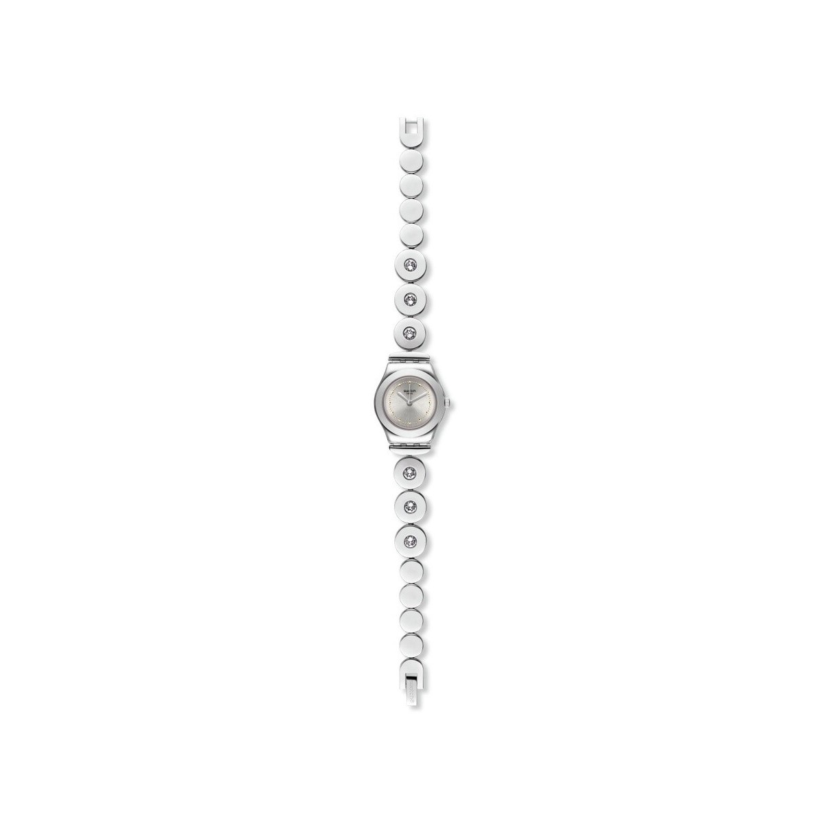 Swatch inspirance watch from the I Lady collection with only time quartz movement, silver-colored steel case and 25 mm round shape and silver-colored steel strap