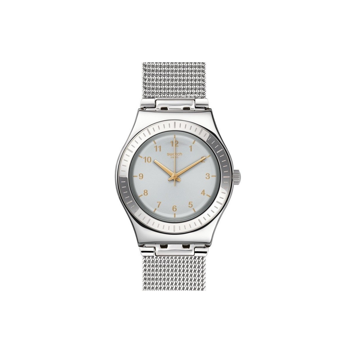 Make way for metals. The Watch has a blue dial (YLS187M) Dim QUITENESS that stands for the Golden coloration of indexes, numbers and hands. Has a matching ring in polished stainless steel on which are engraved the indexes. The case is made of polished stainless steel refined as the strap, whose knit structure gives it an elegant look. Smooth buckle completes the design.