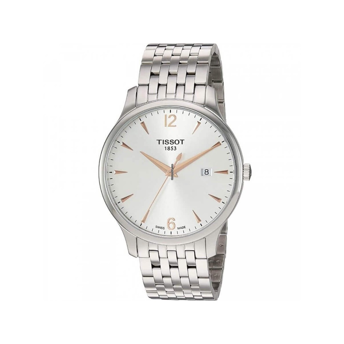 Tissot Tradition Extra Large Men's Watch, silver dial with rosé indexes