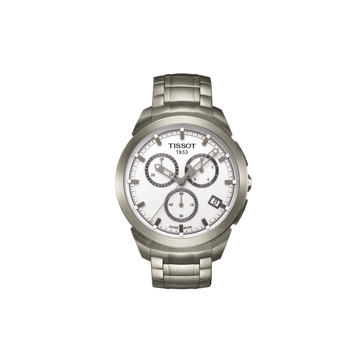 Titanium Chronograph Watch with stainless steel case and bracelet, titanium and Sapphire Crystal quartz movement. The Tissot Titanium, stylish sporty look, is ideal for those who do not accept compromises as to strength or comfort. The lightweight titanium case can be combined with one of the same metal bracelet or rubber strap. Model cast hands and symmetric location of chronograph subdials are a demonstration of how important the dynamism.