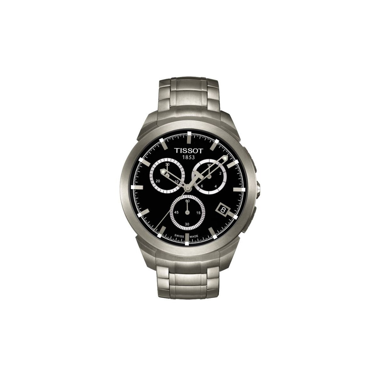 Titanium Chronograph Watch with stainless steel case and bracelet, titanium and Sapphire Crystal quartz movement. The Tissot Titanium, stylish sporty look, is ideal for those who do not accept compromises as to strength or comfort. The lightweight titanium case can be combined with one of the same metal bracelet or rubber strap. Model cast hands and symmetric location of chronograph subdials are a demonstration of how important the dynamism.