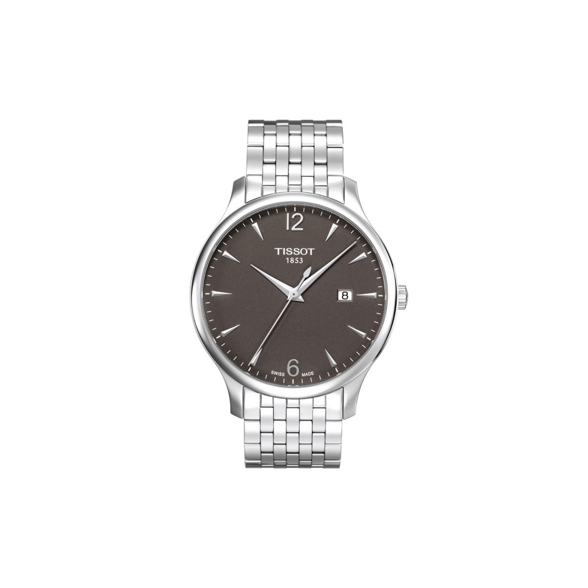 Tradition watch Gent with stainless steel case and bracelet, Sapphire and quartz movement. Tissot Family Tradition gives the ultramodern watch a touch of nostalgia, ammantando the most innovative technology to a vintage style. The high-tech operation blends perfectly with the classical details and elegant vintage finishes, complete with design elements like the Guilloche decoration and a gently curved case. Tissot watches Tradition promise endless hours of precision accompanied by a charming look