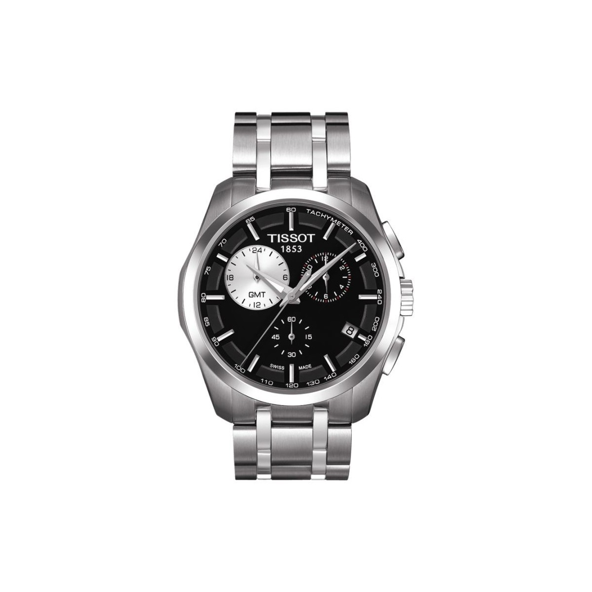 Man's watch Couturier with black dial, quartz movement gmt and steel and satin bracelet