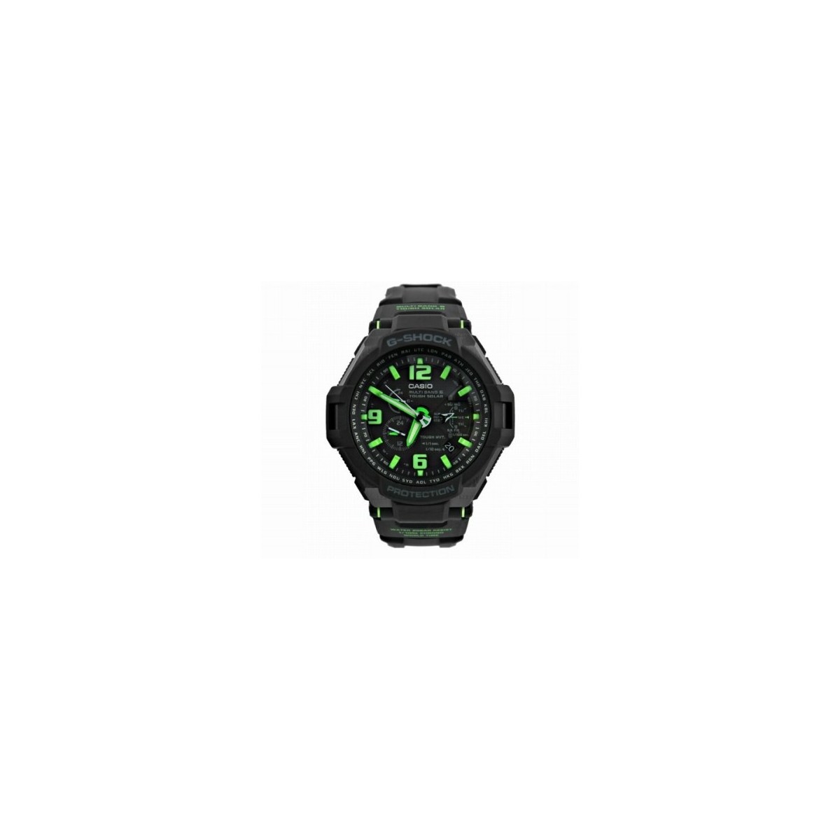 Casio watch - G-Shock Men's Chronograph Black / Green lighting system, radio controlled, analogical / digital, with rubber strap and polycarbonate case; water resistant with a capacity of 20 Bar.